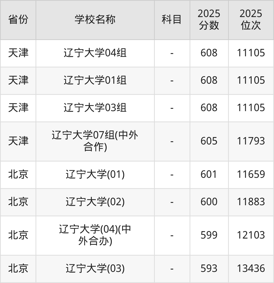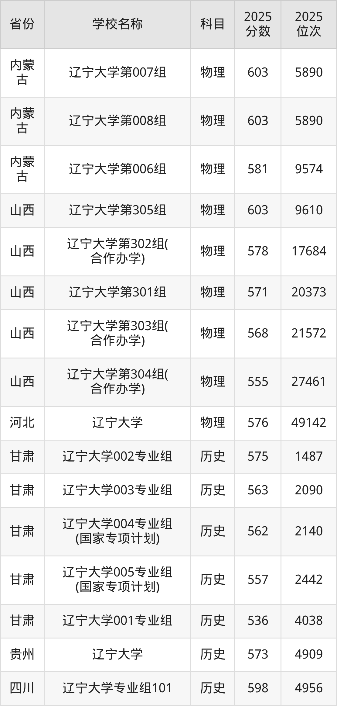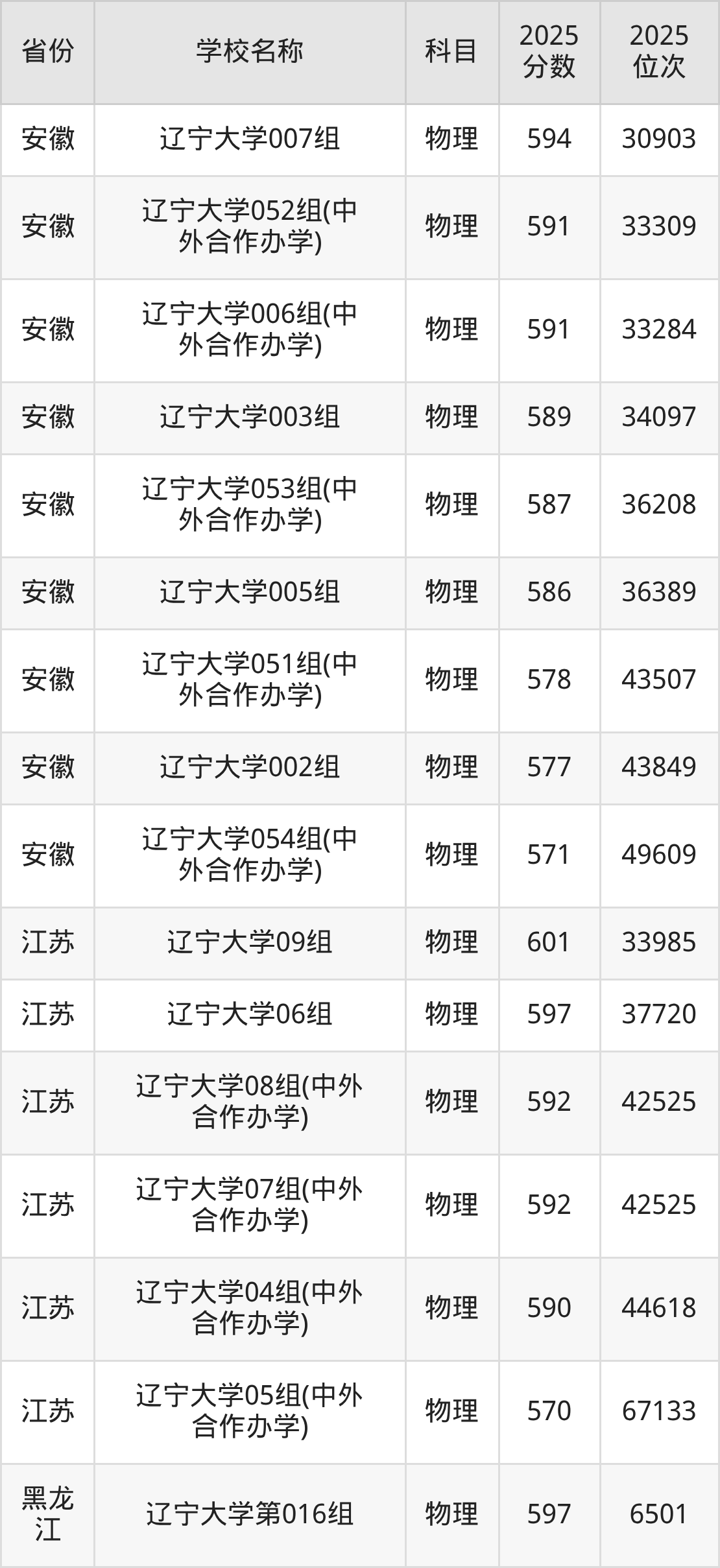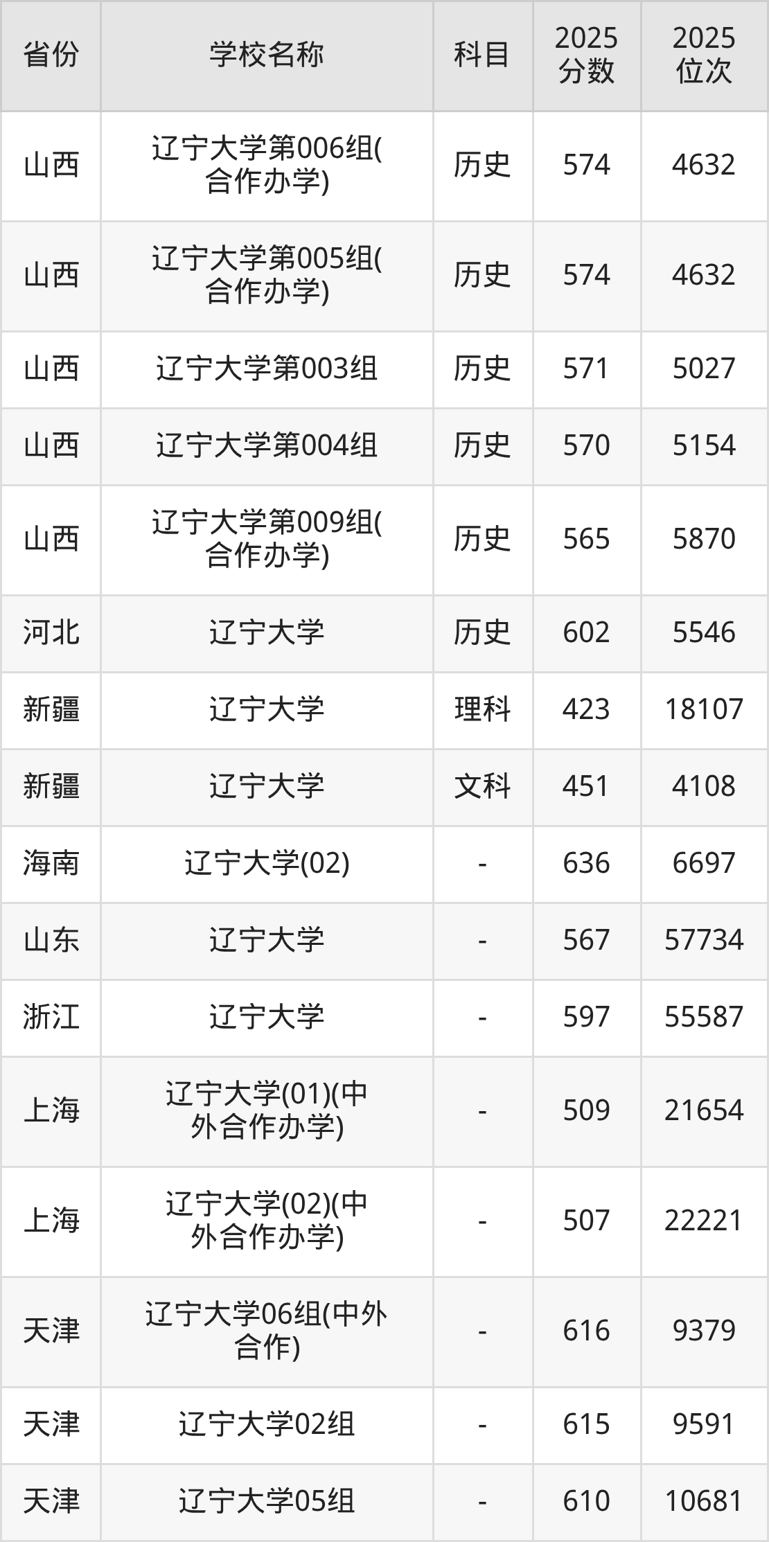 一、2025辽宁大学录取分数线