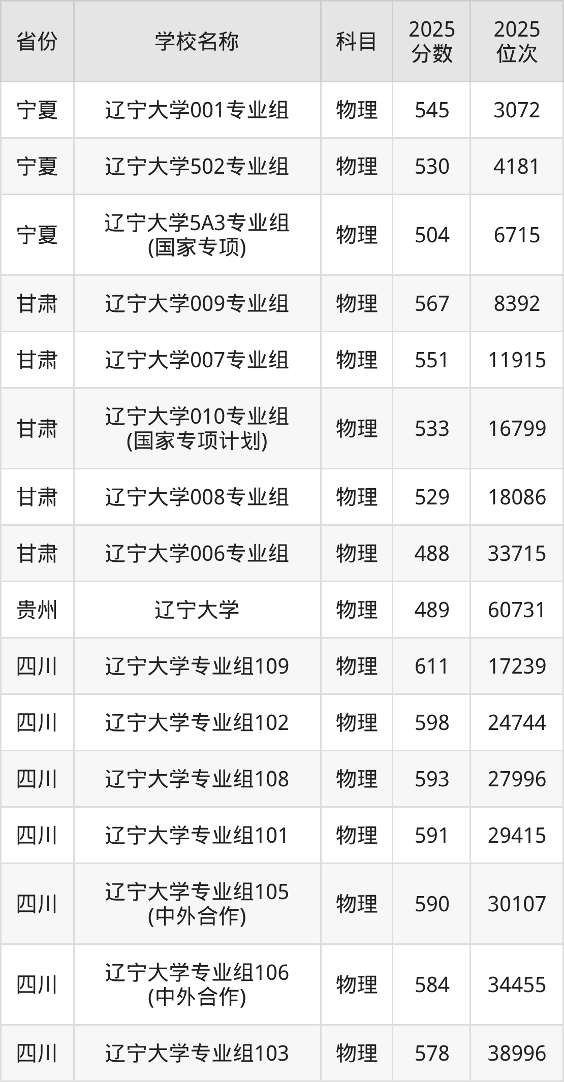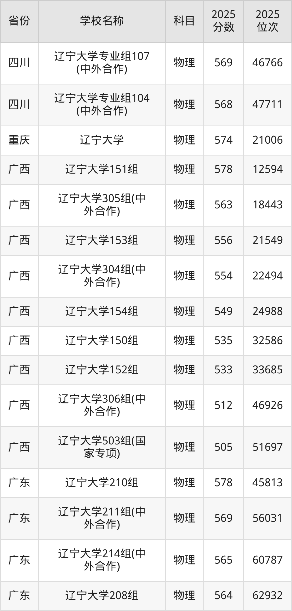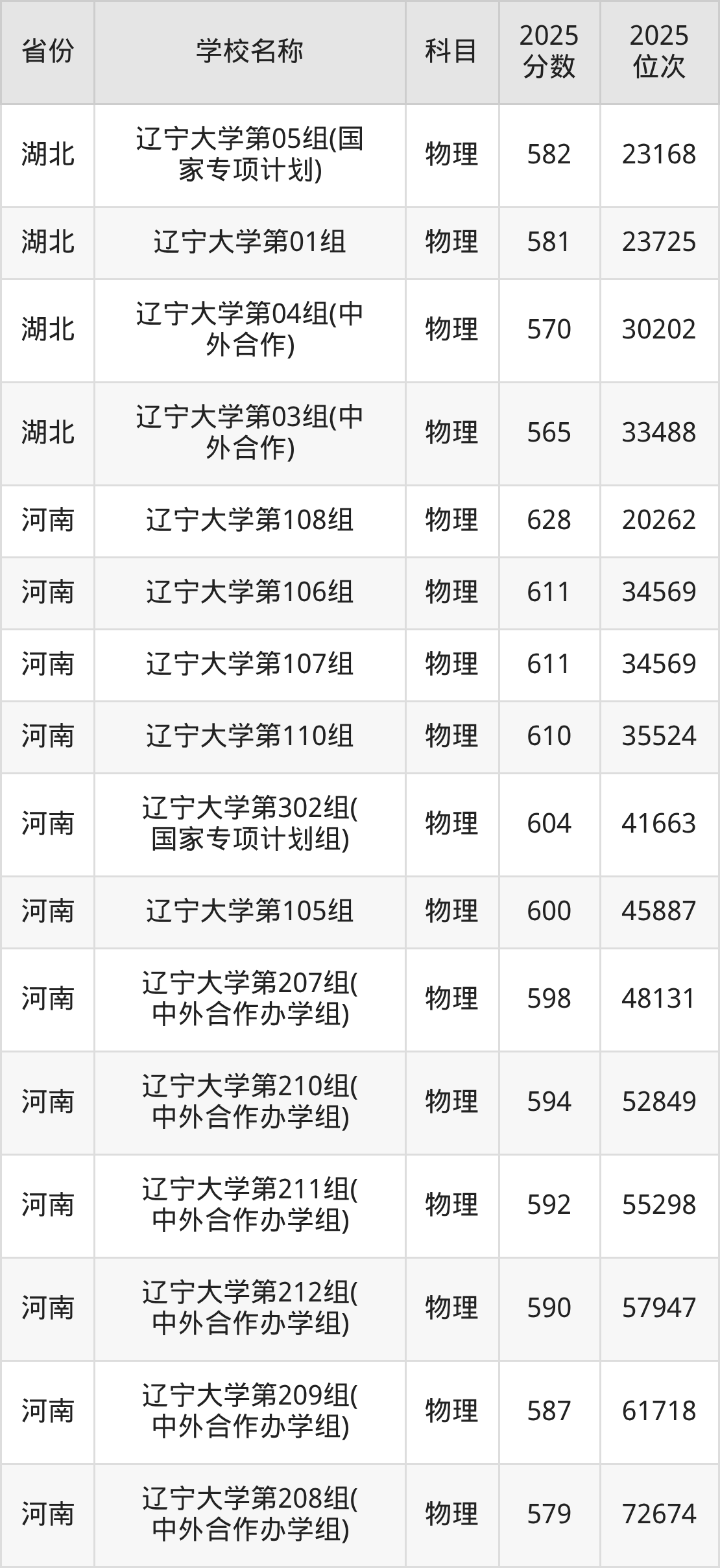 20、物理学专业:2025年最低579分、最低位次是20928