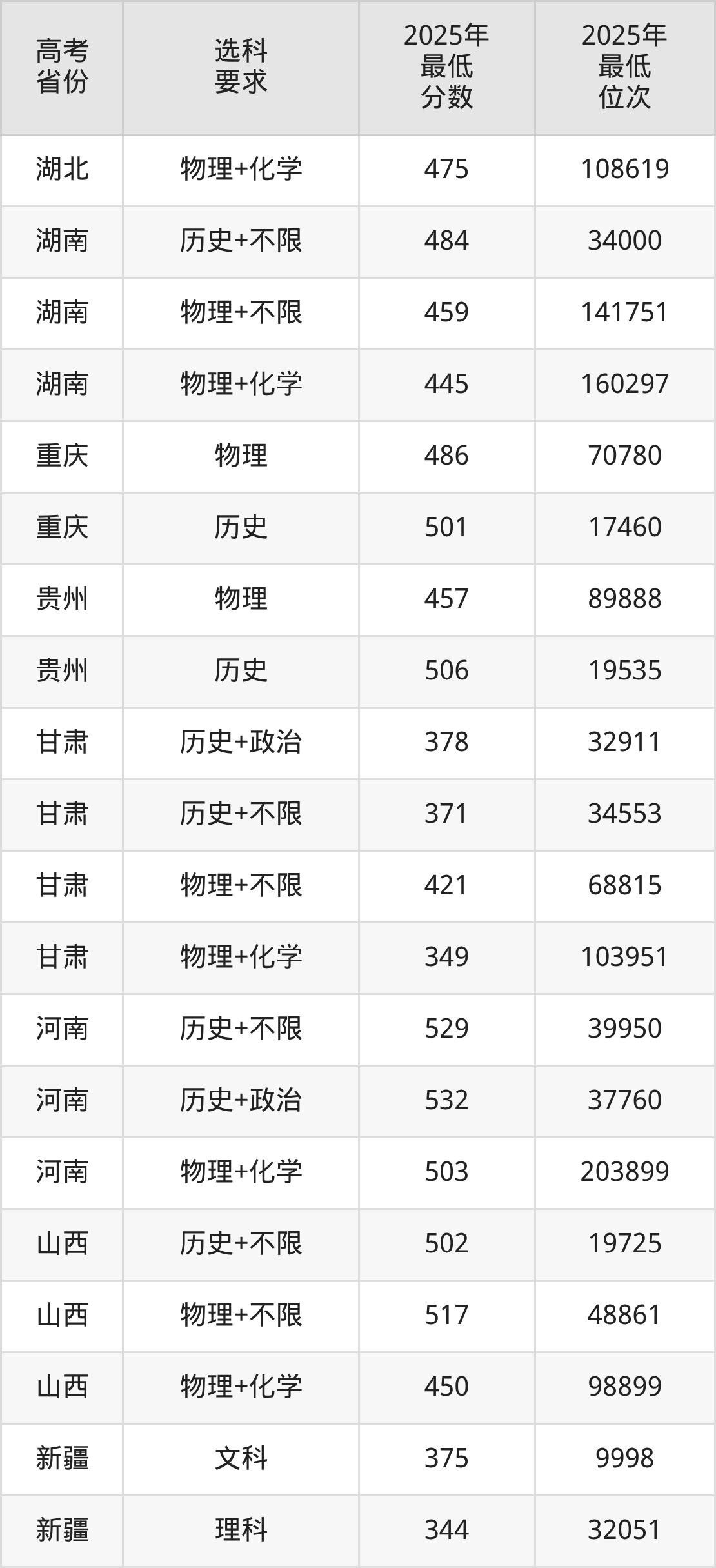 在2025年甘肃高考物理类招生时,211收分最低的是四川大学904专业组(国防基地预科),最低分是408分、位次是76099位。再看河西学院,2025年在甘肃物理类的最低录取分数线是349分,最低位次是103951位。