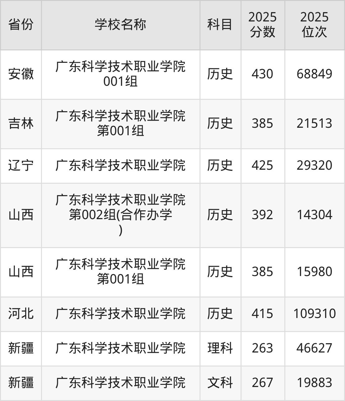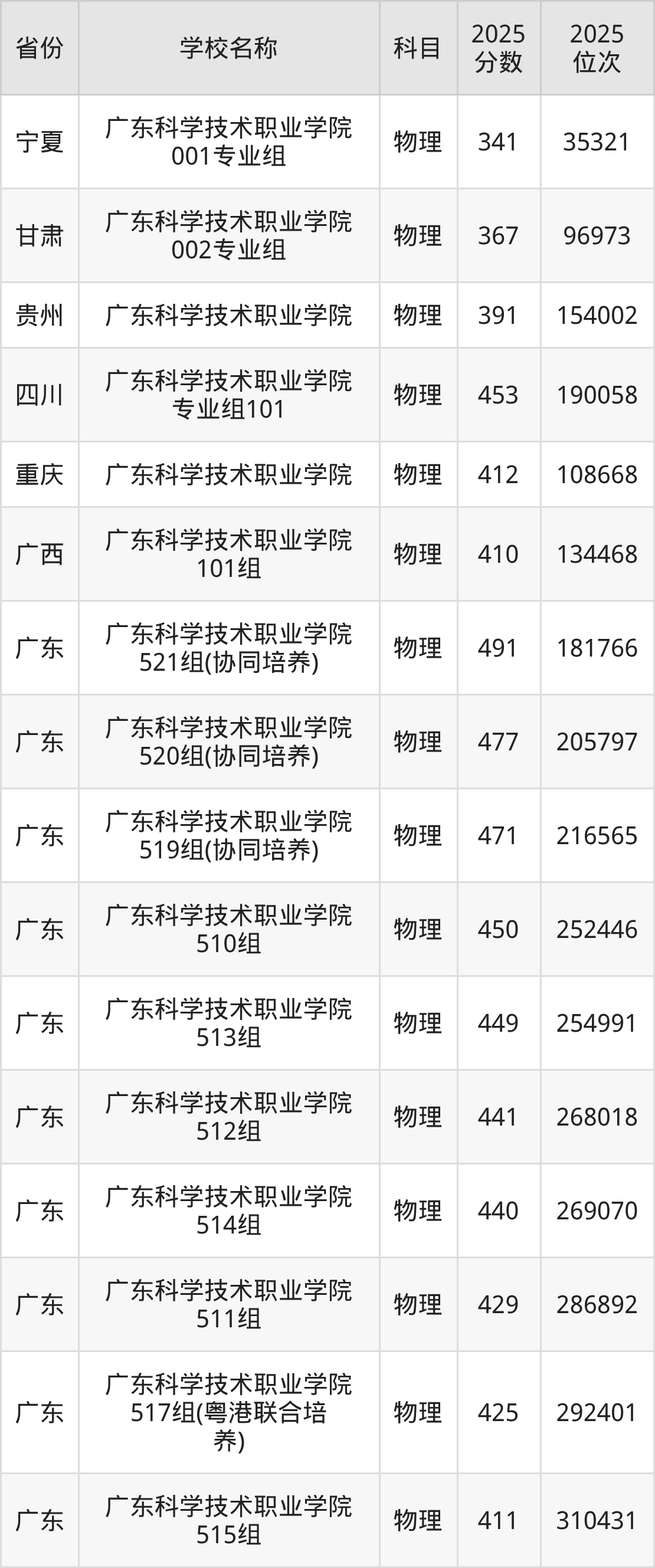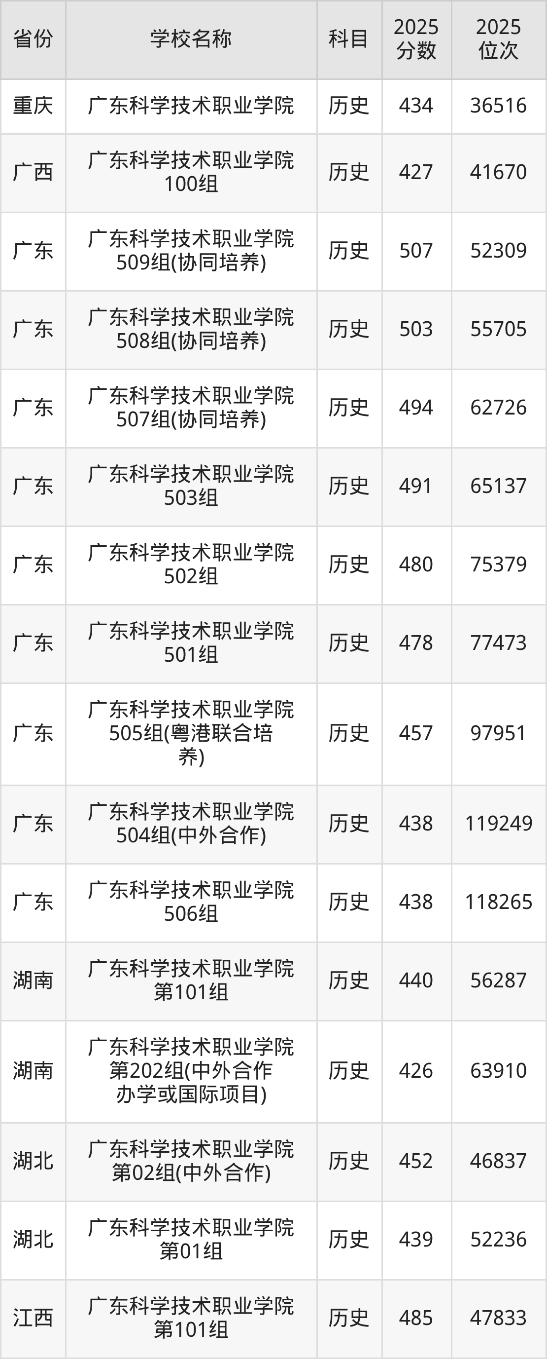 一、2025广东科学技术职业学院录取分数线