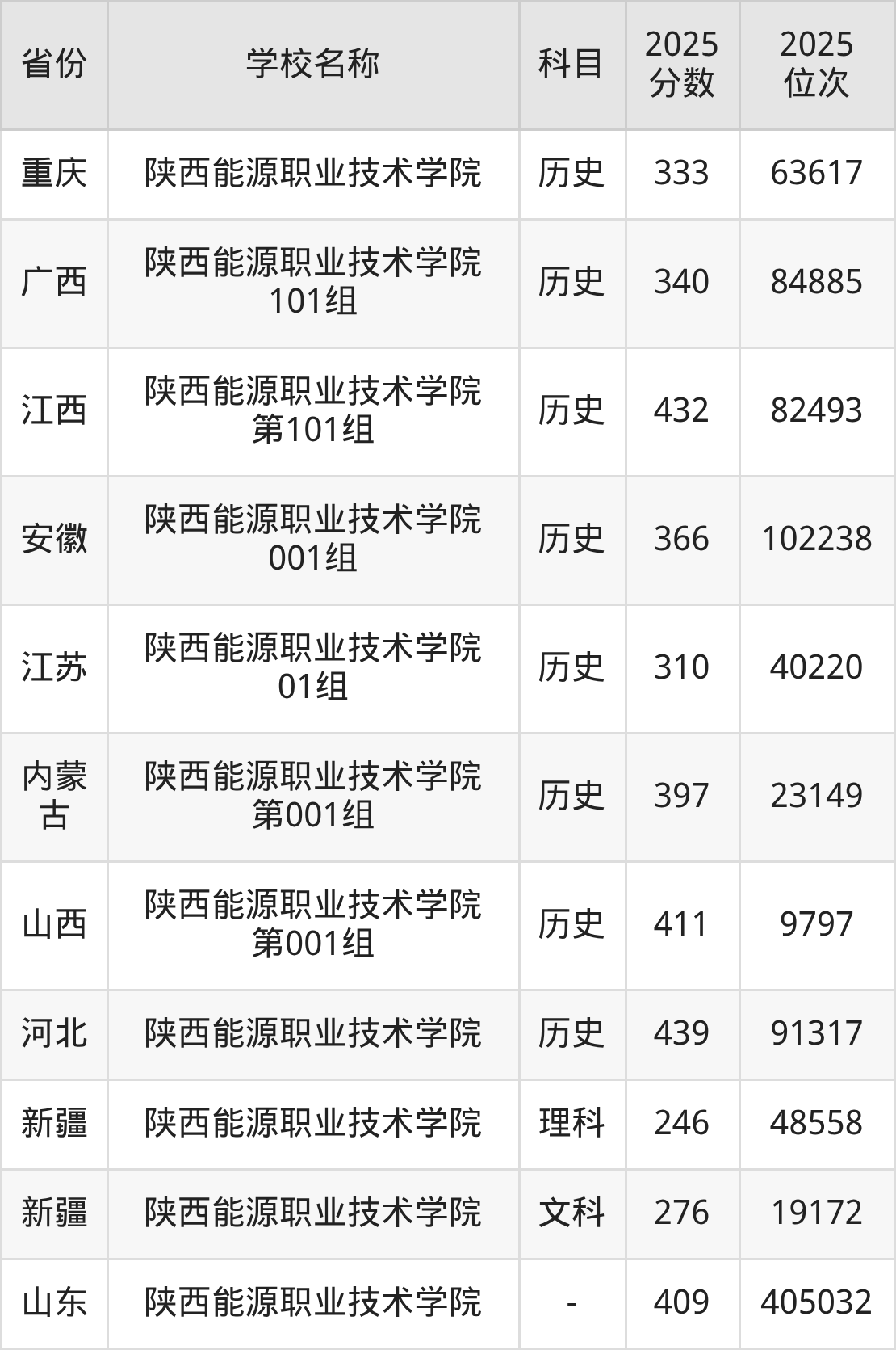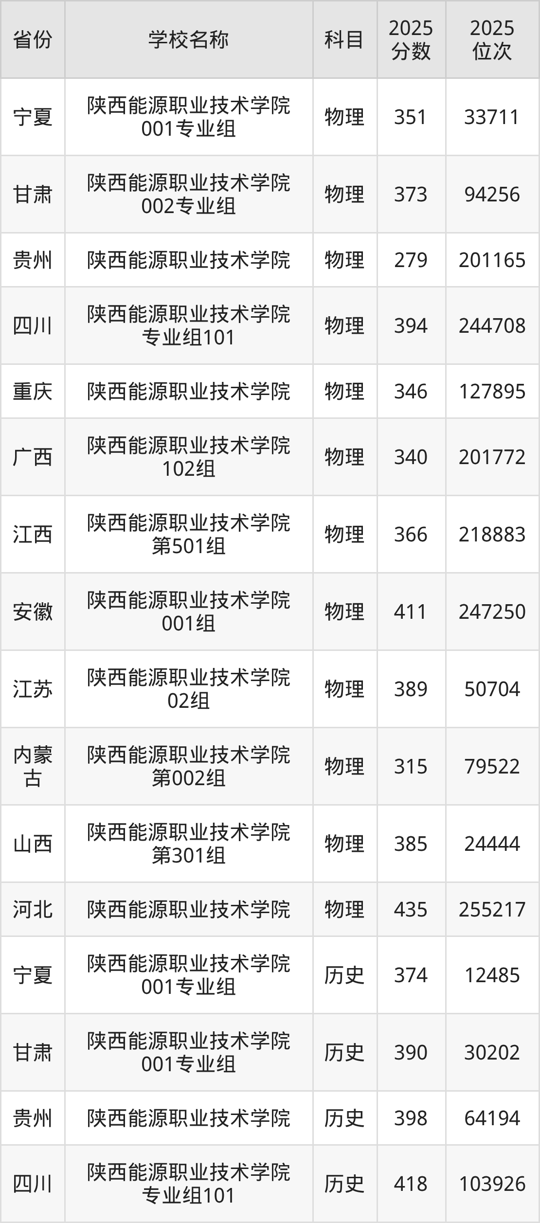 2025年陕西能源职业技术学院在全国各省专科的最低录取分数线在246~439分之间。河北物理类高考生最低435分能上陕西能源职业技术学院、安徽物理类高考生最低411分能上陕西能源职业技术学院……下文将展示陕西能源职业技术学院在全国14个高考省份中的专科最低投档录取分汇总!