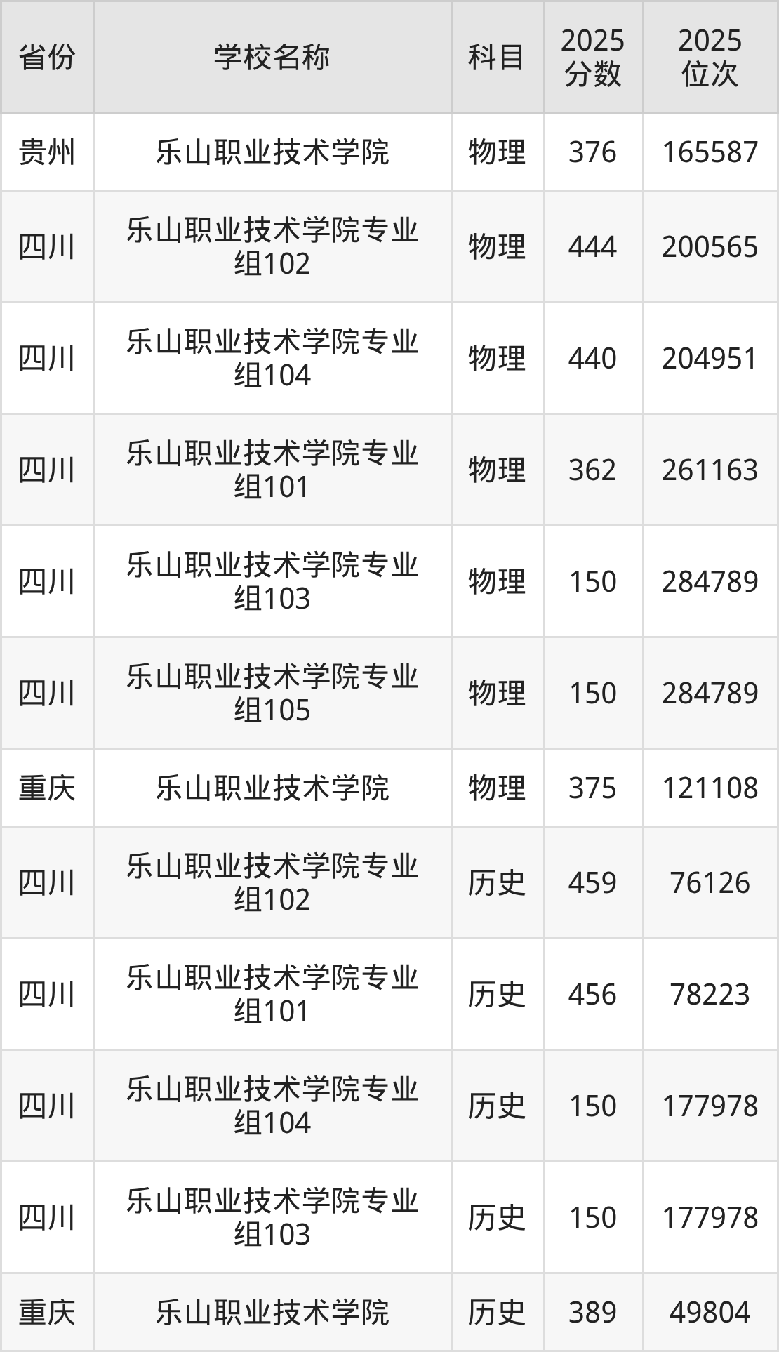 再看四川高考2025年专科批次线,历史类是150分、物理类是150分。通过对比发现:乐山职业技术学院2025年历史类最低分与专科线相等,物理类最低分与专科线相等。2026届四川高考生,可通过每一次模考划线,来判断自己的成绩是否有机会被乐山职业技术学院录取。