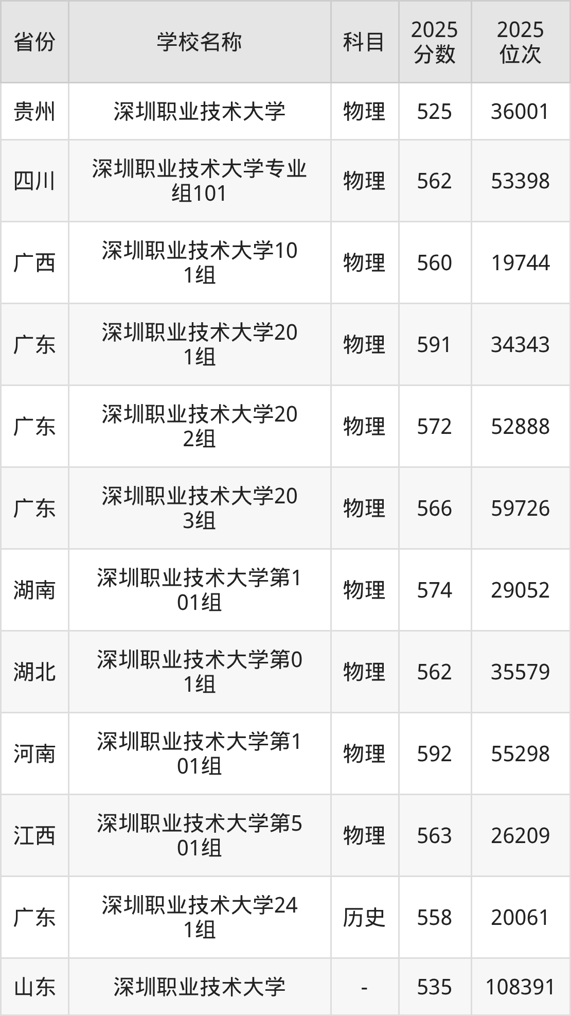 一、2025深圳职业技术大学录取分数线
