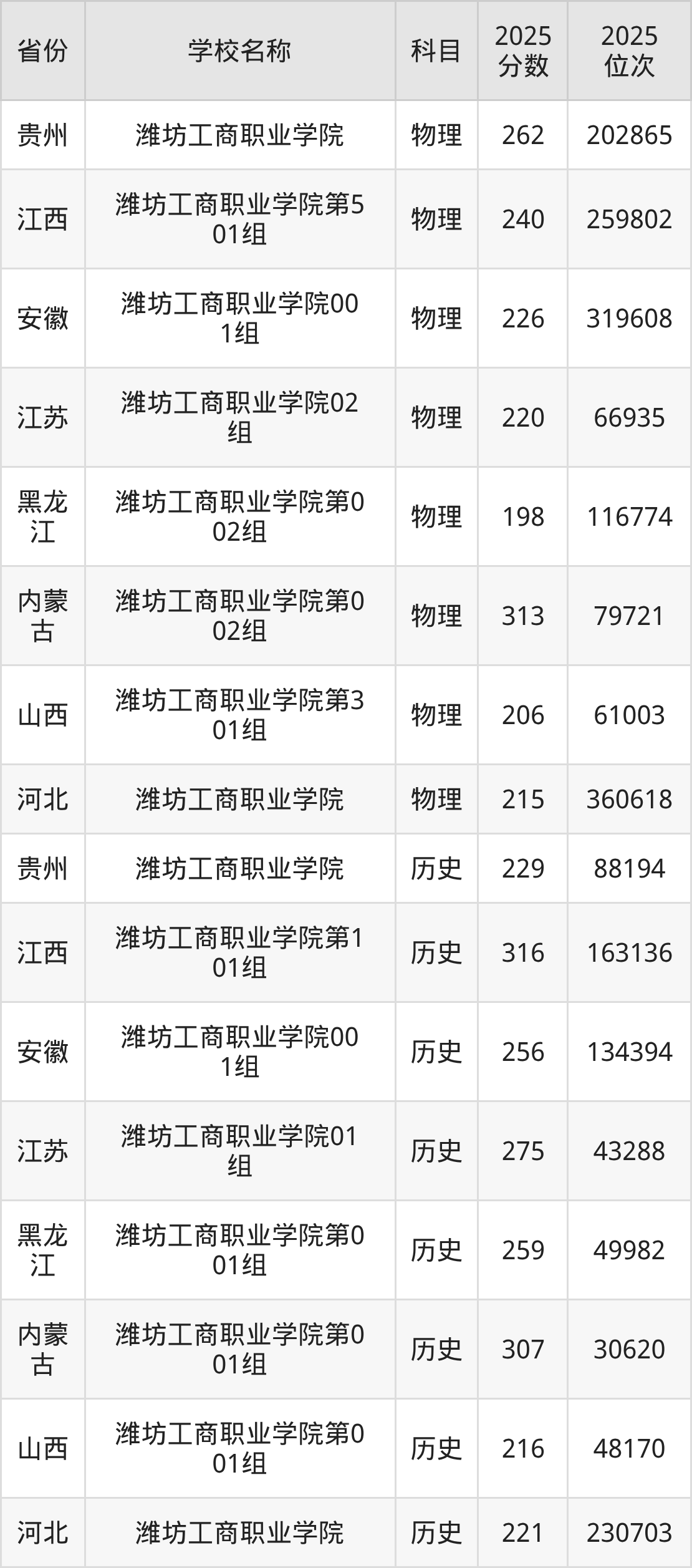 一、2025潍坊工商职业学院录取分数线