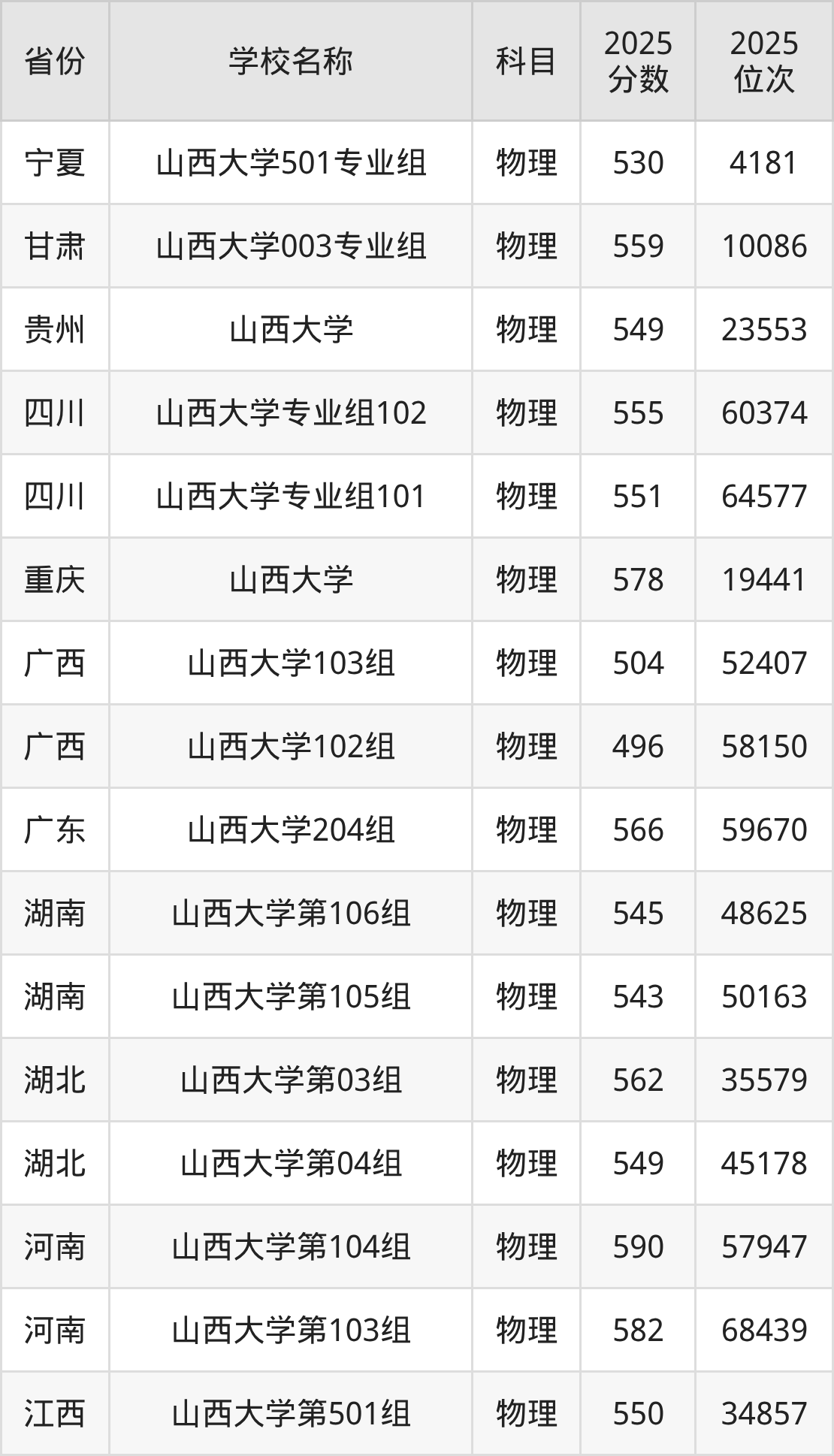 山西大学2025年有44个专业组面向山西省内首选了物理科目的考生招生: