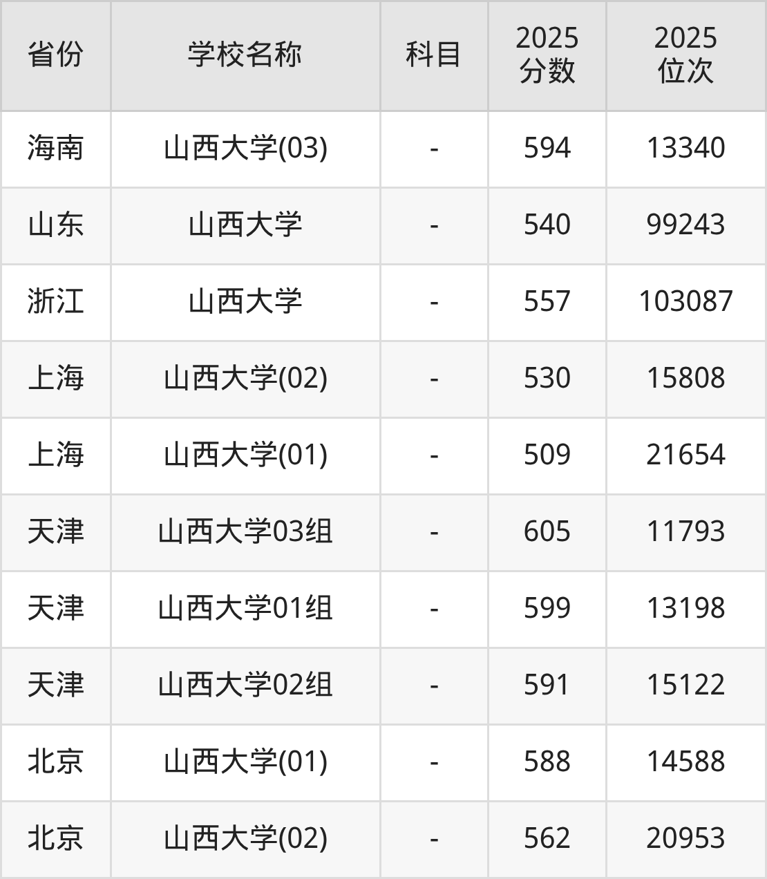 一、2025山西大学录取分数线