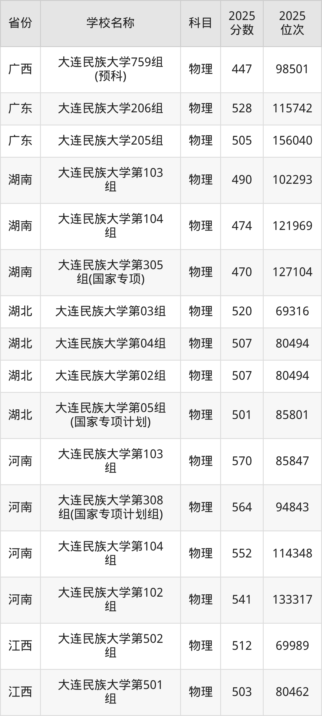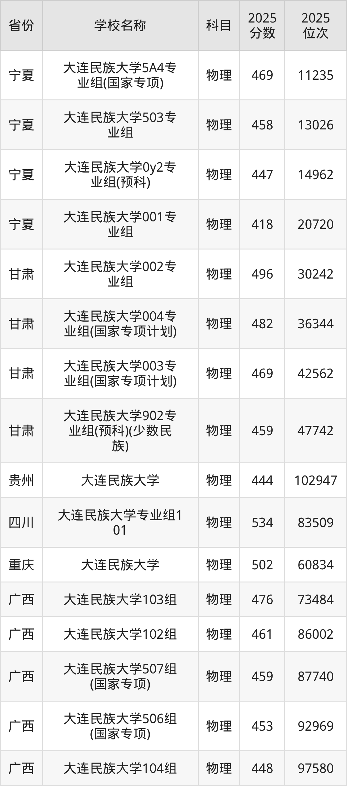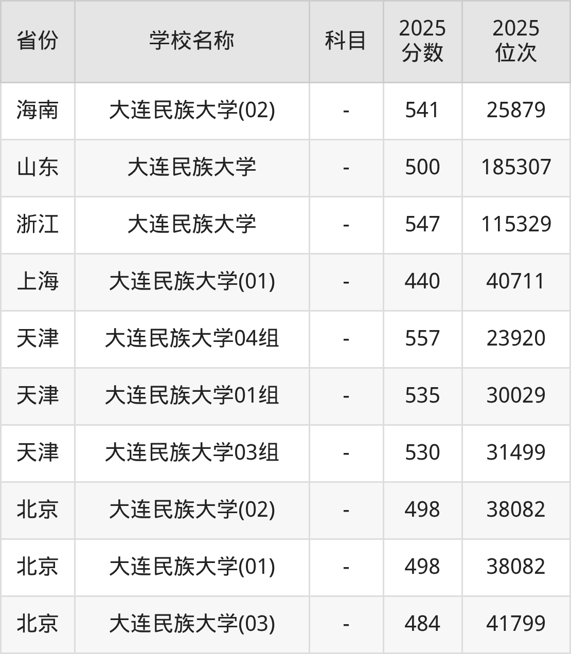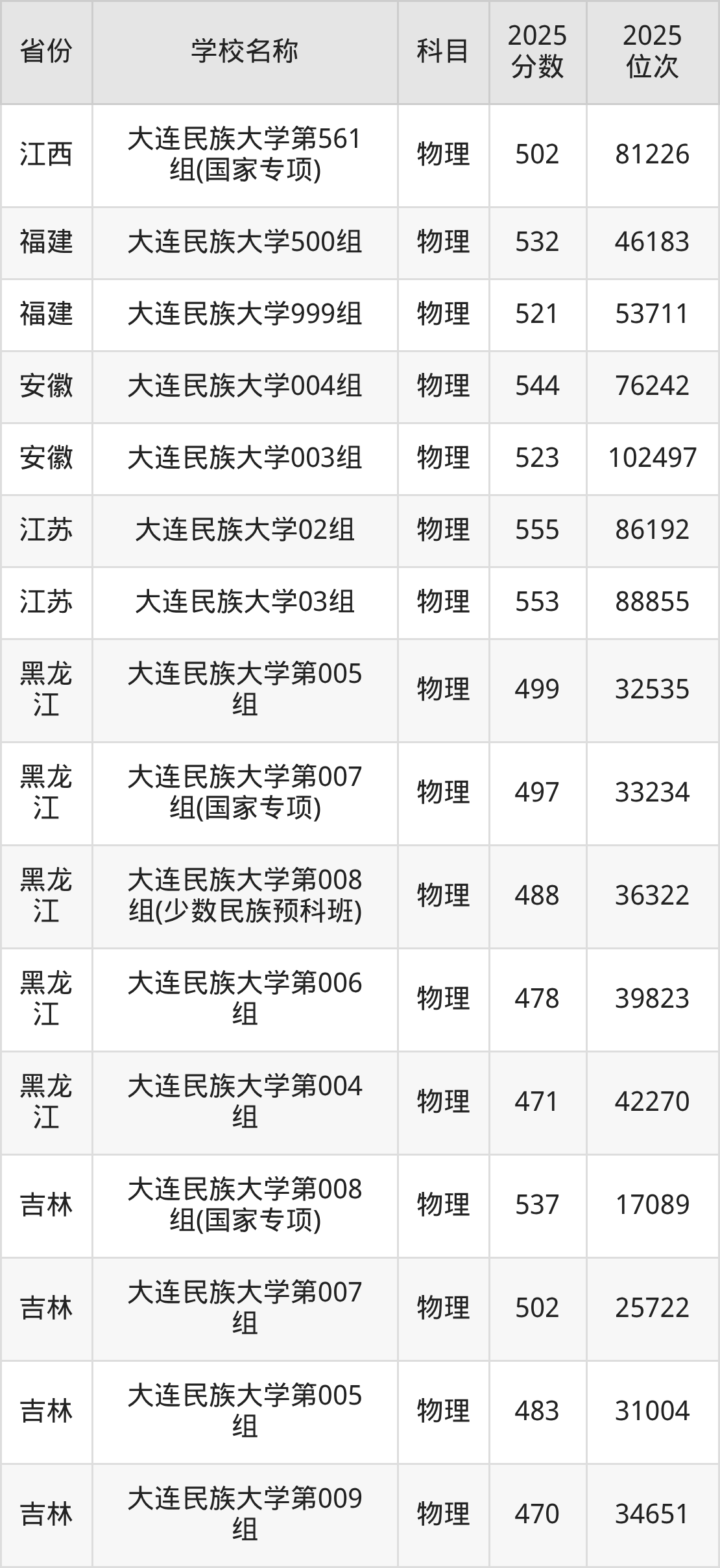 二、大连民族大学各专业录取分数线