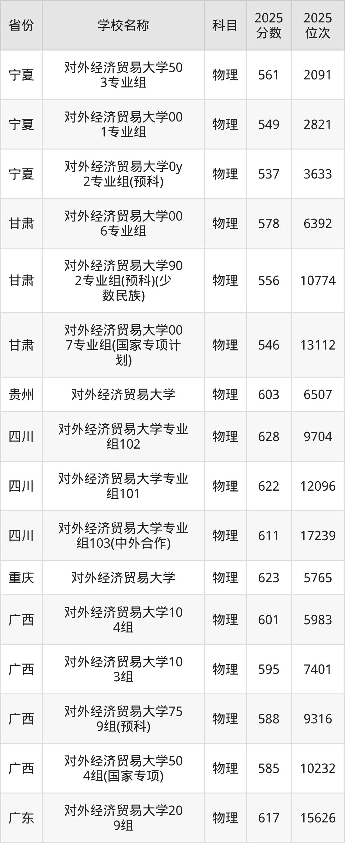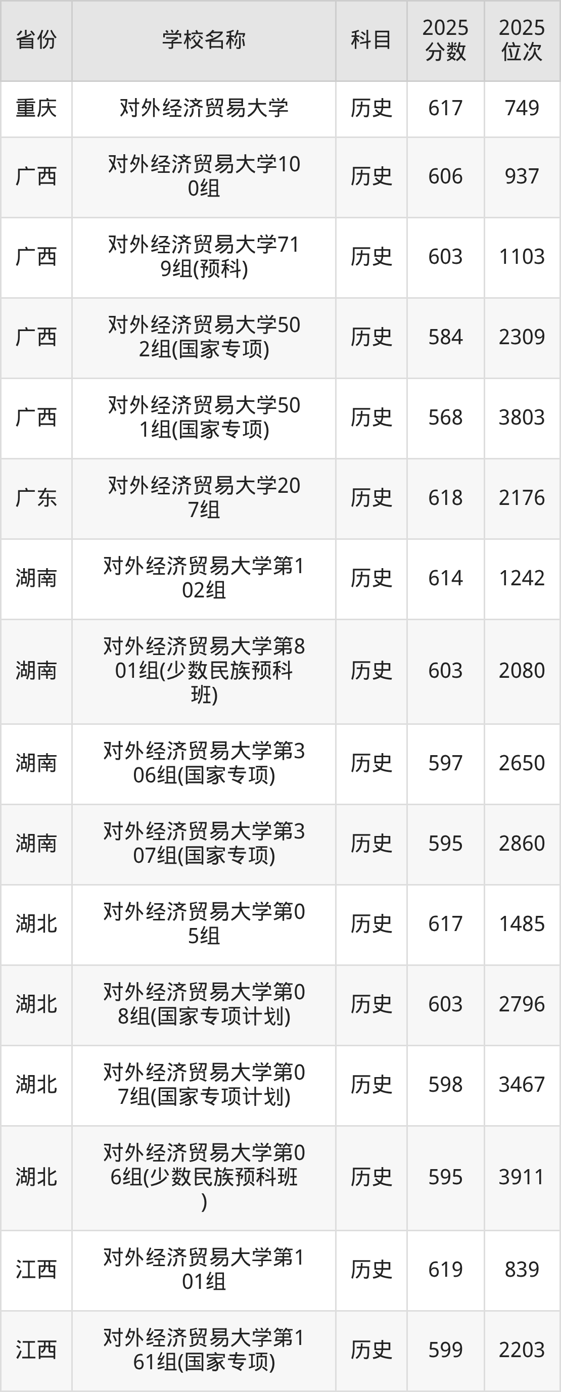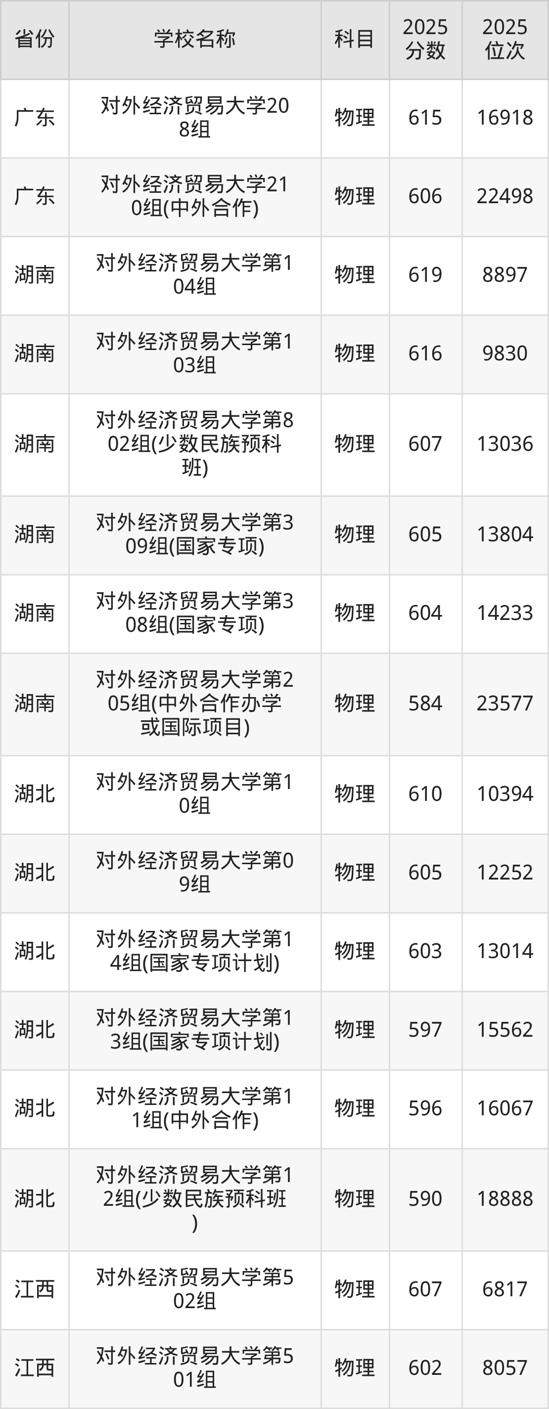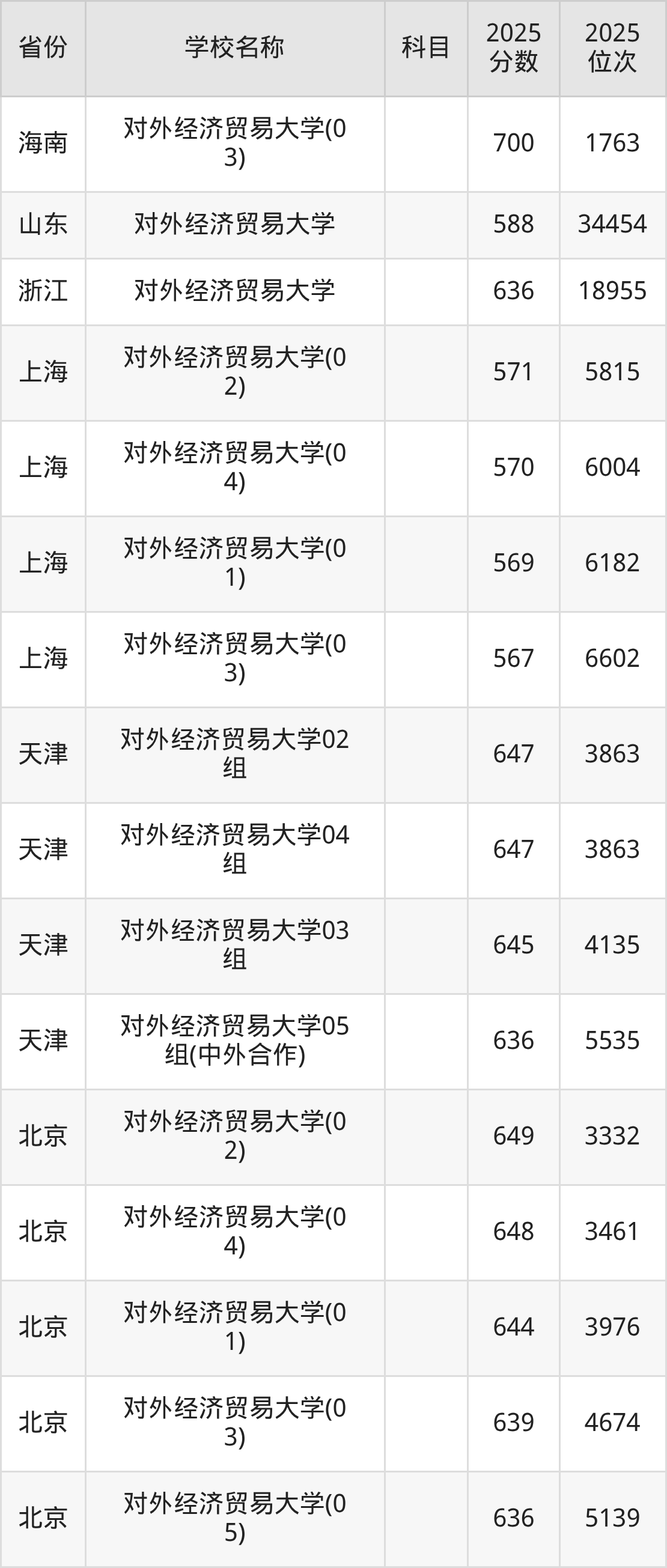 一、2025对外经济贸易大学录取分数线
