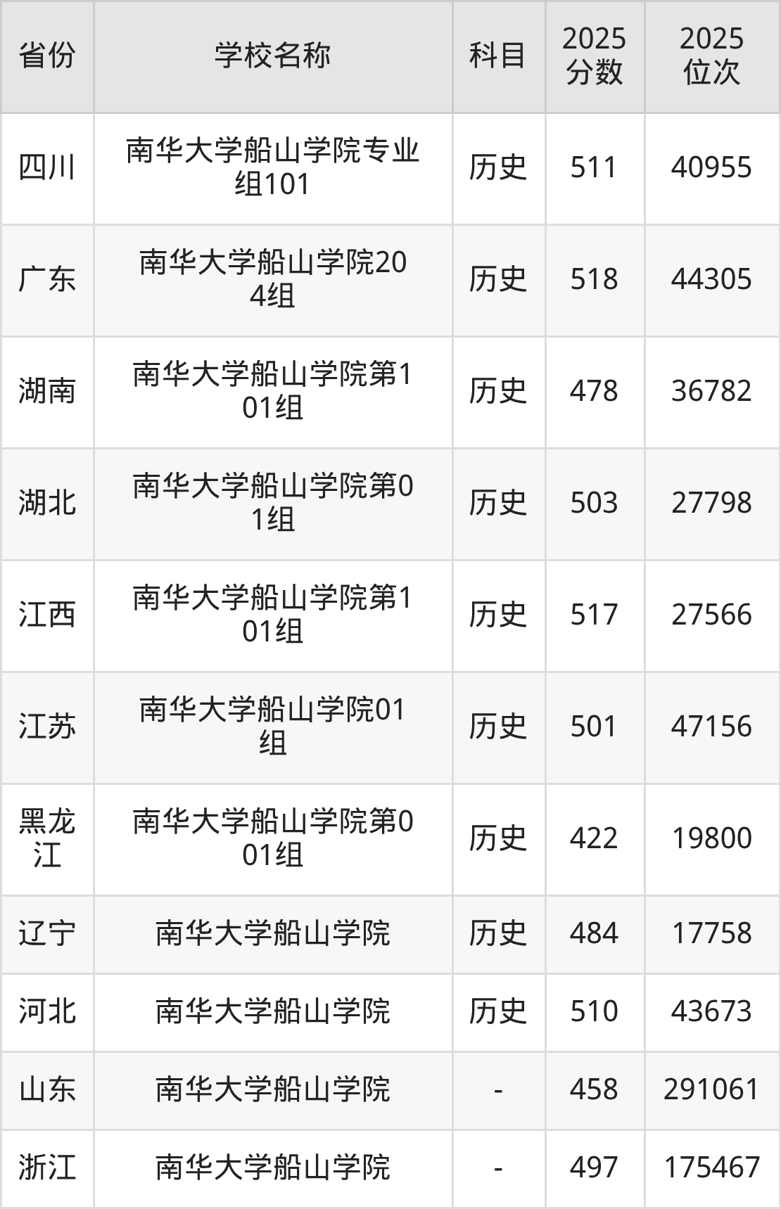 2025年南华大学船山学院在全国各省本科的最低录取分数线在422~518分之间。浙江高考生最低497分能上南华大学船山学院、广东物理类高考生最低494分能上南华大学船山学院……下文将展示南华大学船山学院在全国12个高考省份中的本科最低投档录取分汇总!