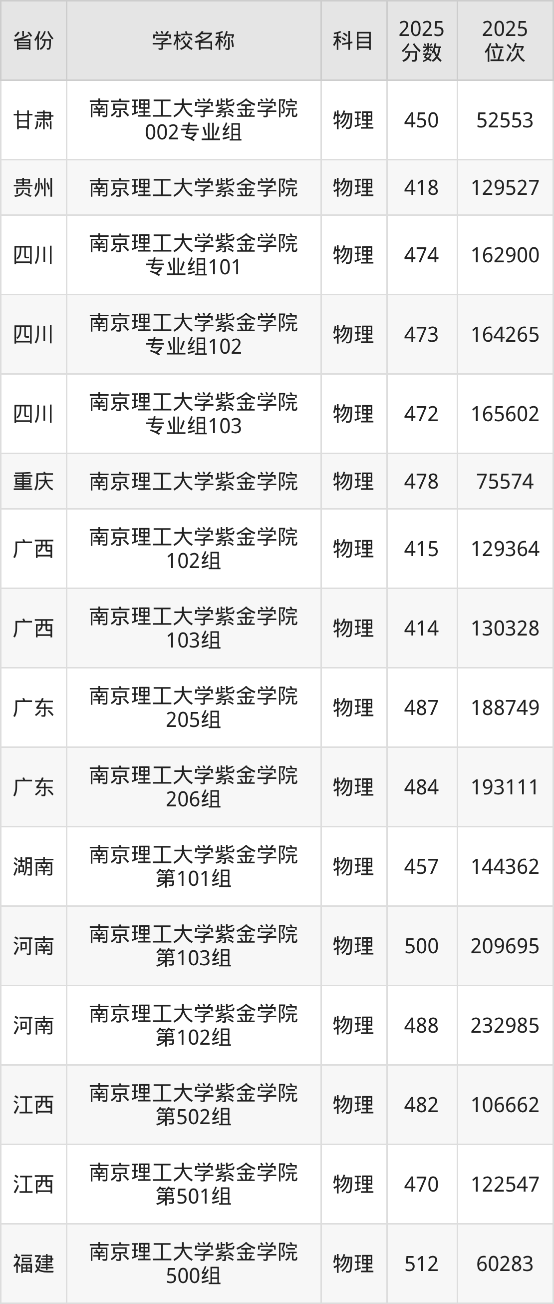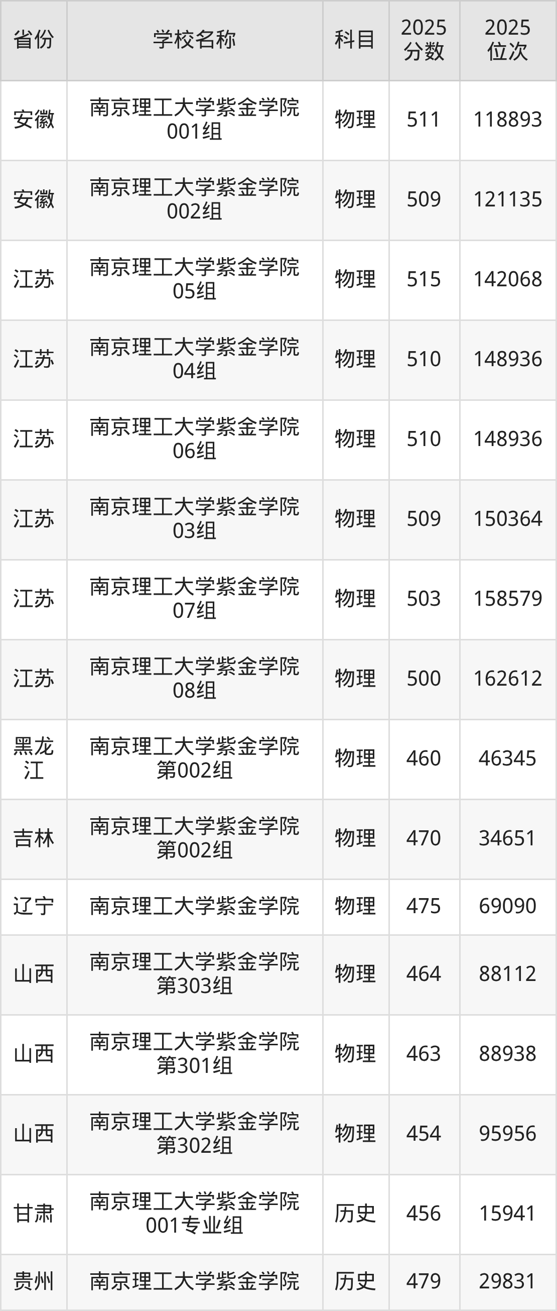 南京理工大学紫金学院2025年有6个专业组面向江苏省内首选了物理科目的考生招生: