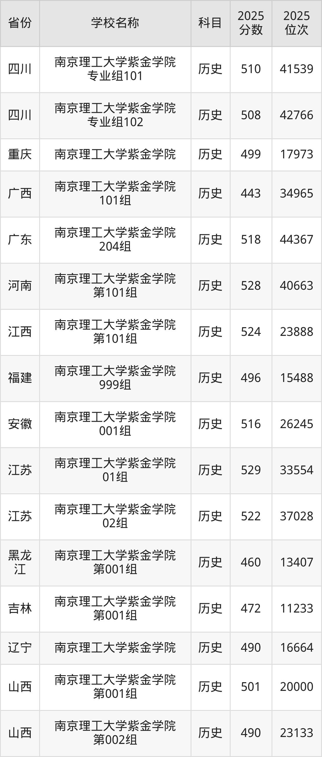 南京理工大学紫金学院2025年有2个专业组面向江苏省内首选了历史科目的考生招生:
