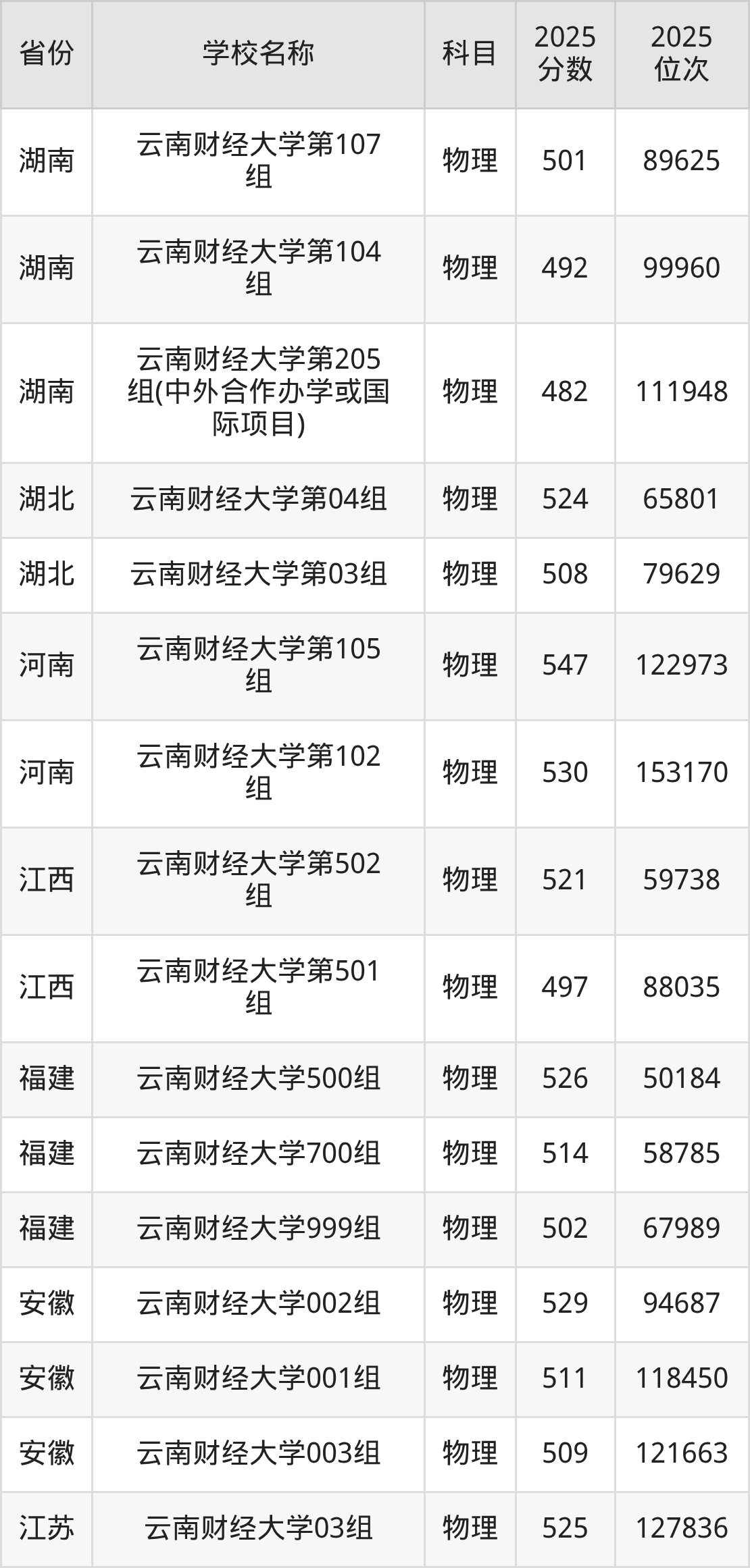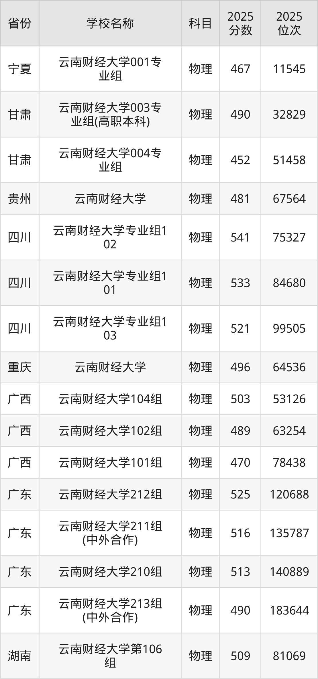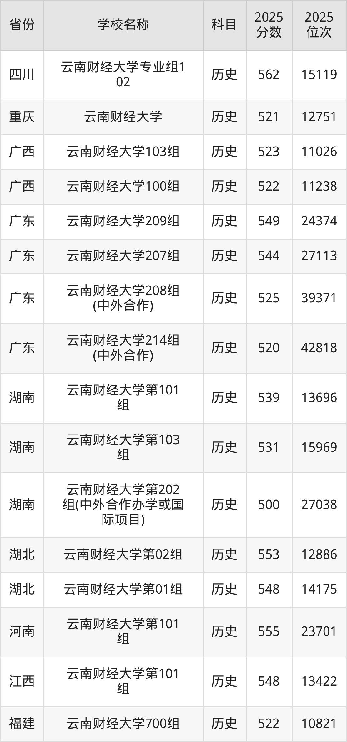 二、云南财经大学各专业录取分数线
