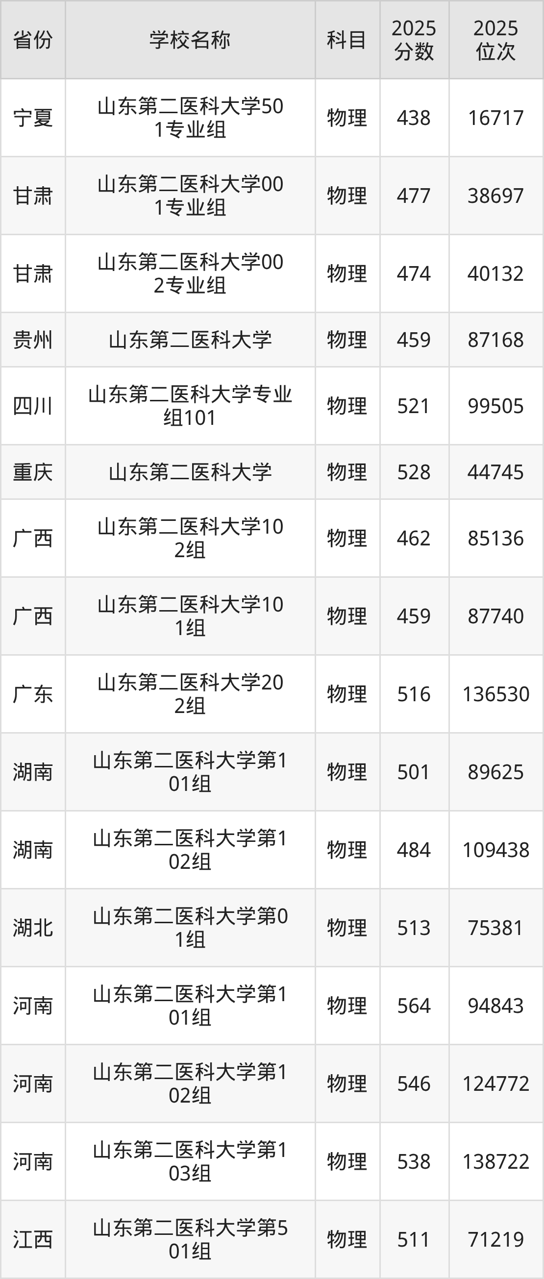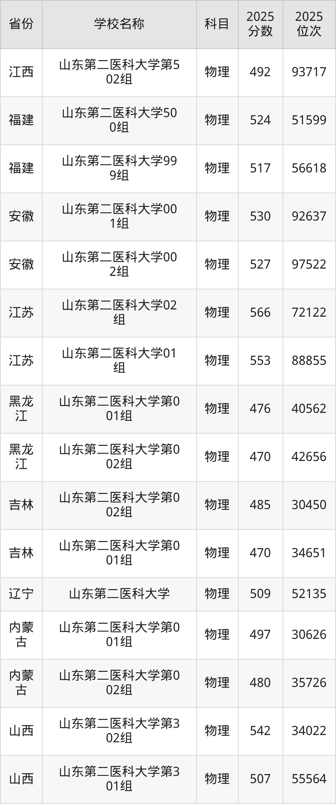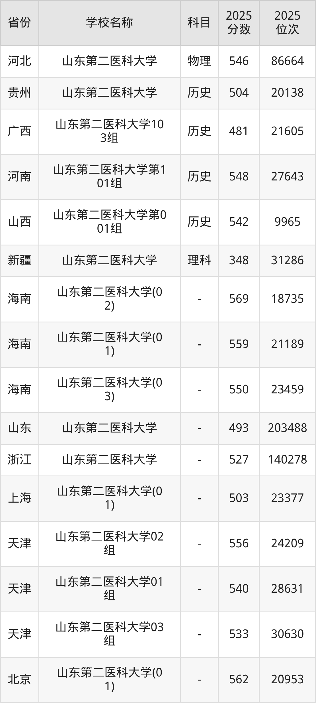 2025年山东第二医科大学在全国各省本科的最低录取分数线在348~569分之间。海南高考生最低569分能上山东第二医科大学、江苏物理类高考生最低566分能上山东第二医科大学……下文将展示山东第二医科大学在全国27个高考省份中的本科最低投档录取分汇总!