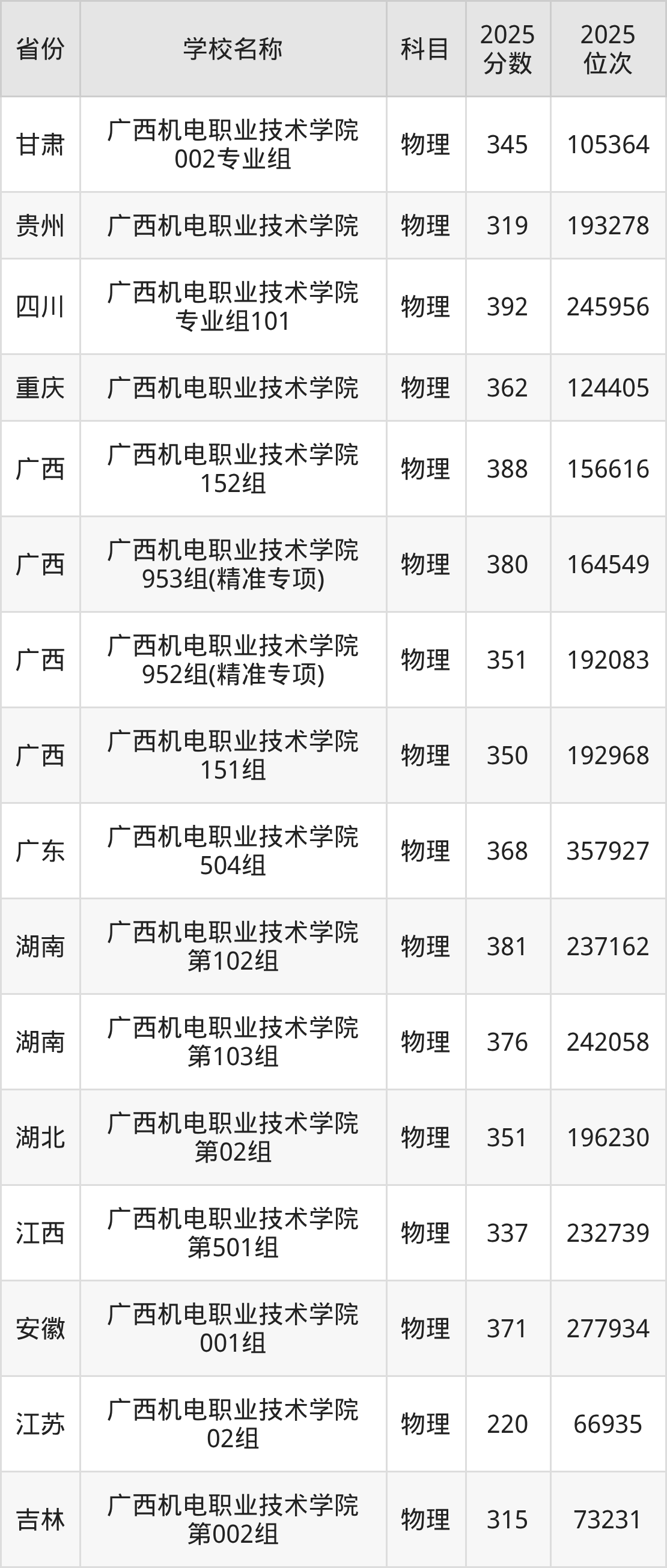 广西机电职业技术学院2025年有4个专业组面向广西壮族自治区内首选了物理科目的考生招生: