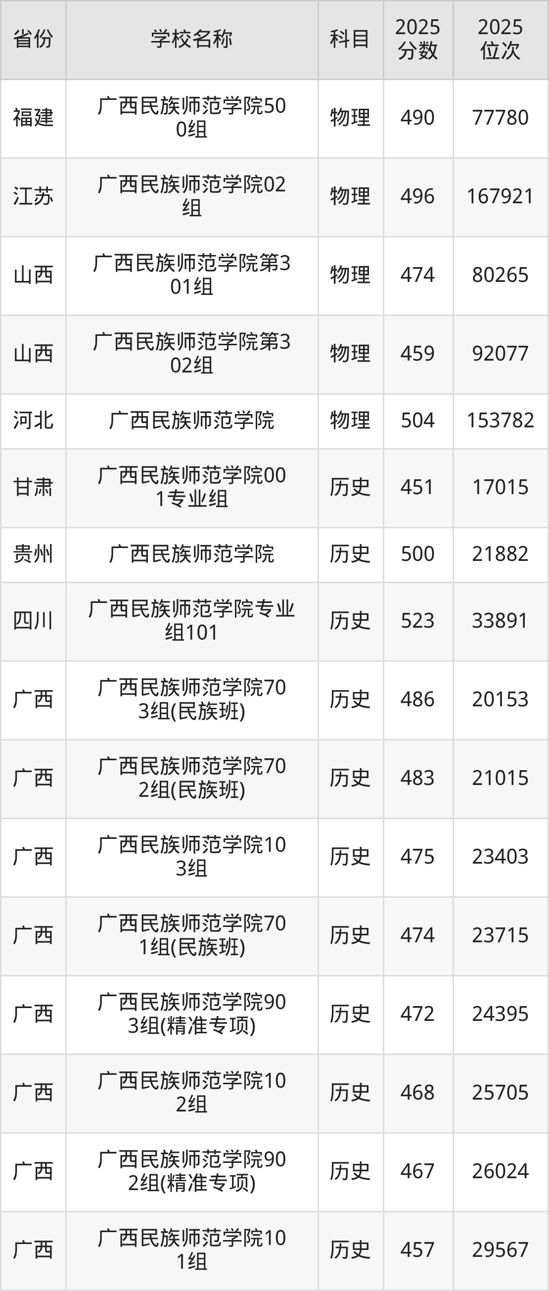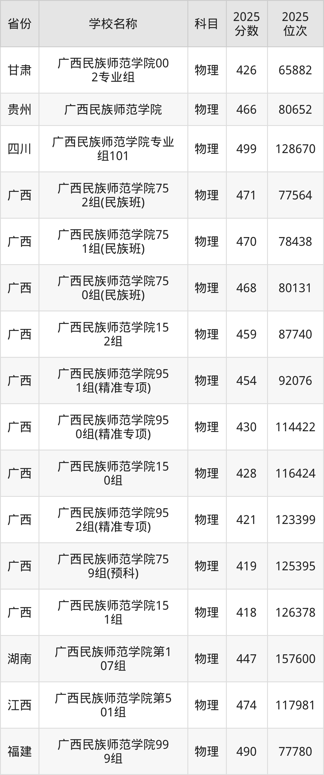 广西民族师范学院2025年有18个专业组面向广西壮族自治区内首选了物理科目的考生招生: