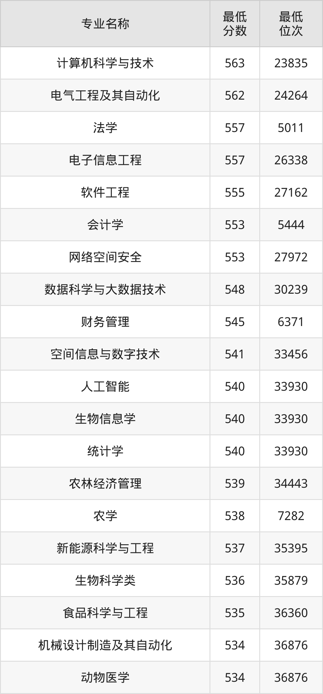 | 四川 | 理科本科一批 | —— | 544/531/523 |
