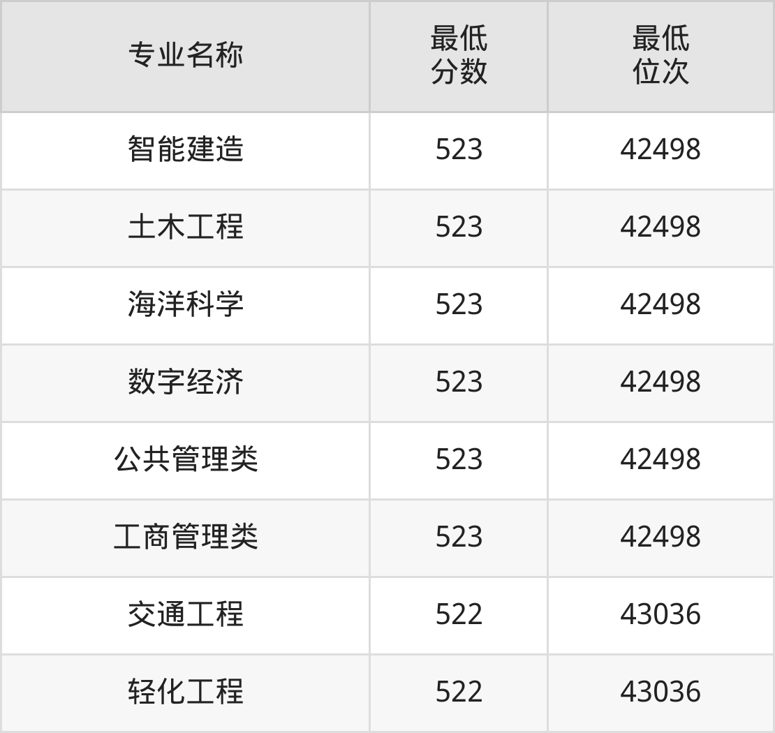 | 福建 | 物理本科批 | 专业组: 500 | 561/523/491 |