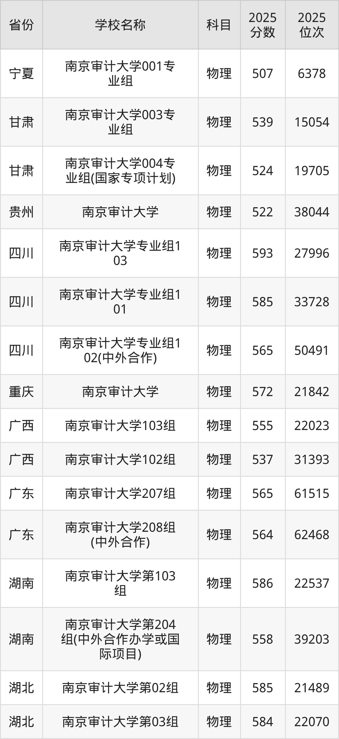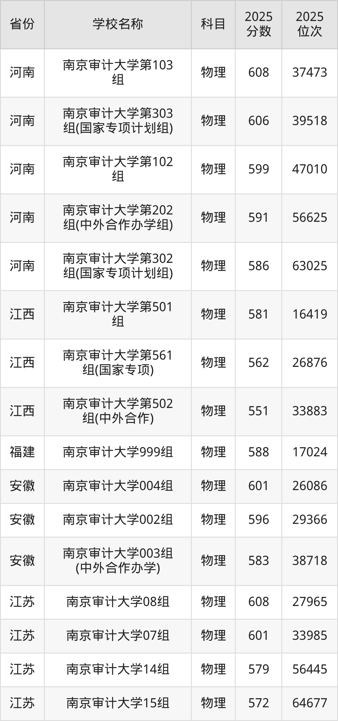 南京审计大学2025年有9个专业组面向江苏省内首选了物理科目的考生招生: