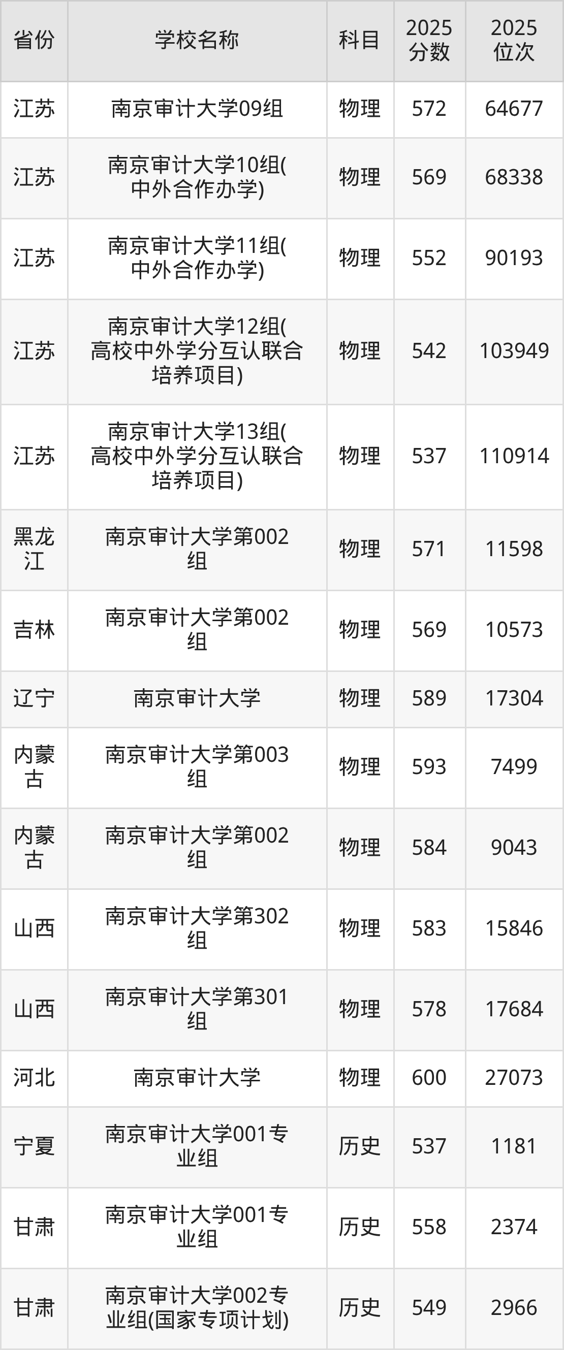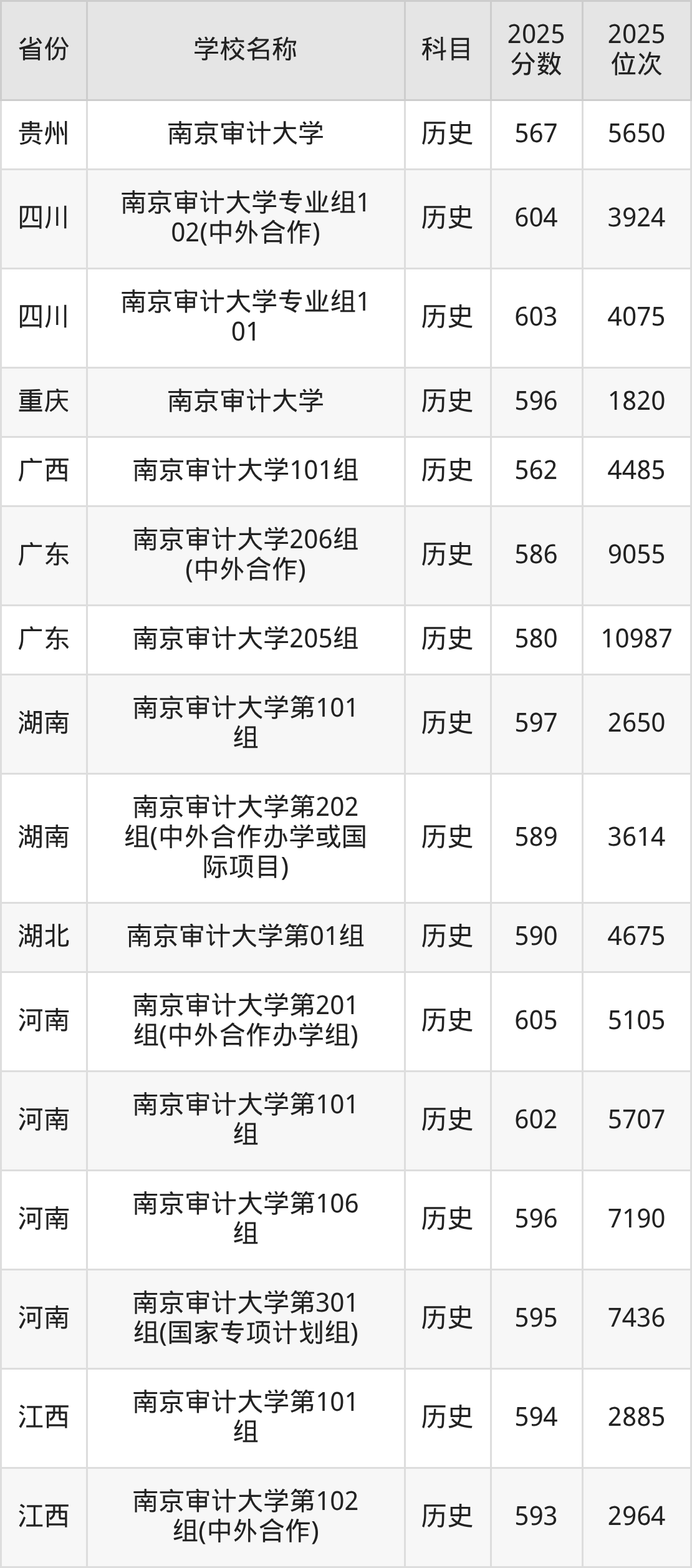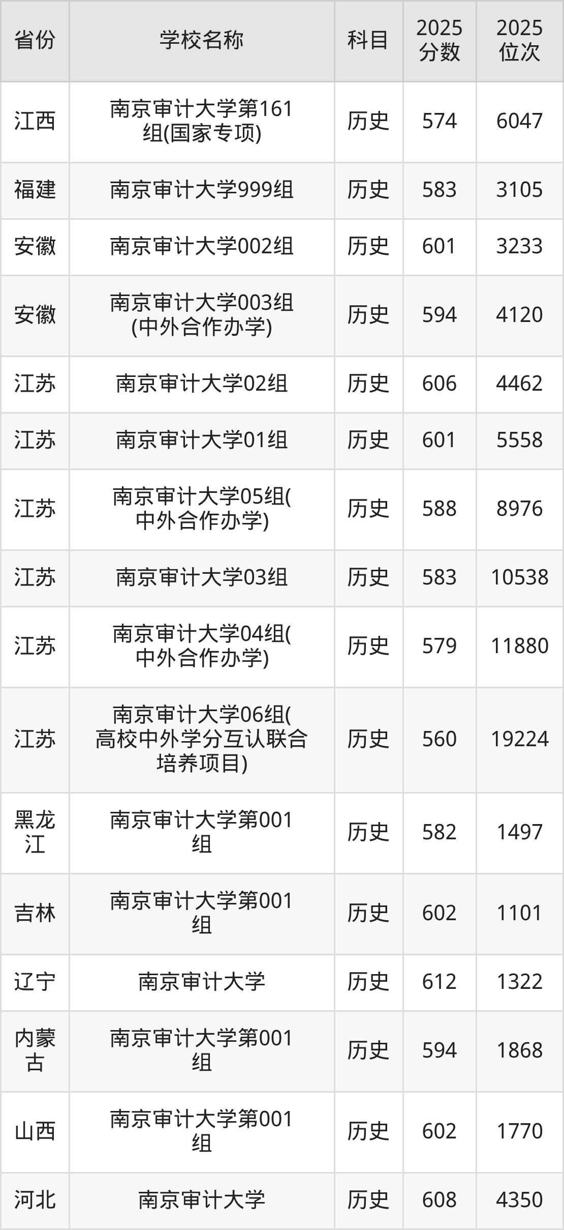 南京审计大学2025年有6个专业组面向江苏省内首选了历史科目的考生招生: