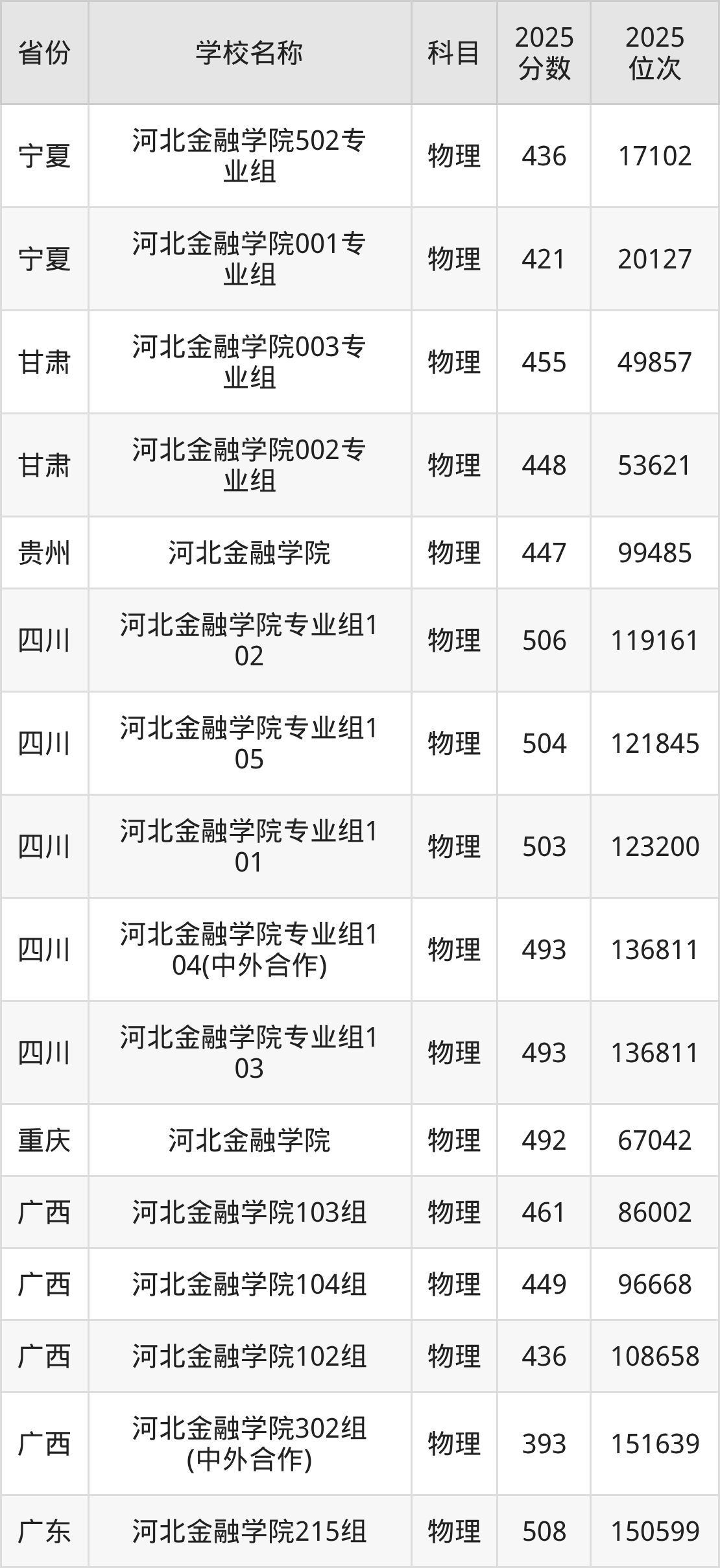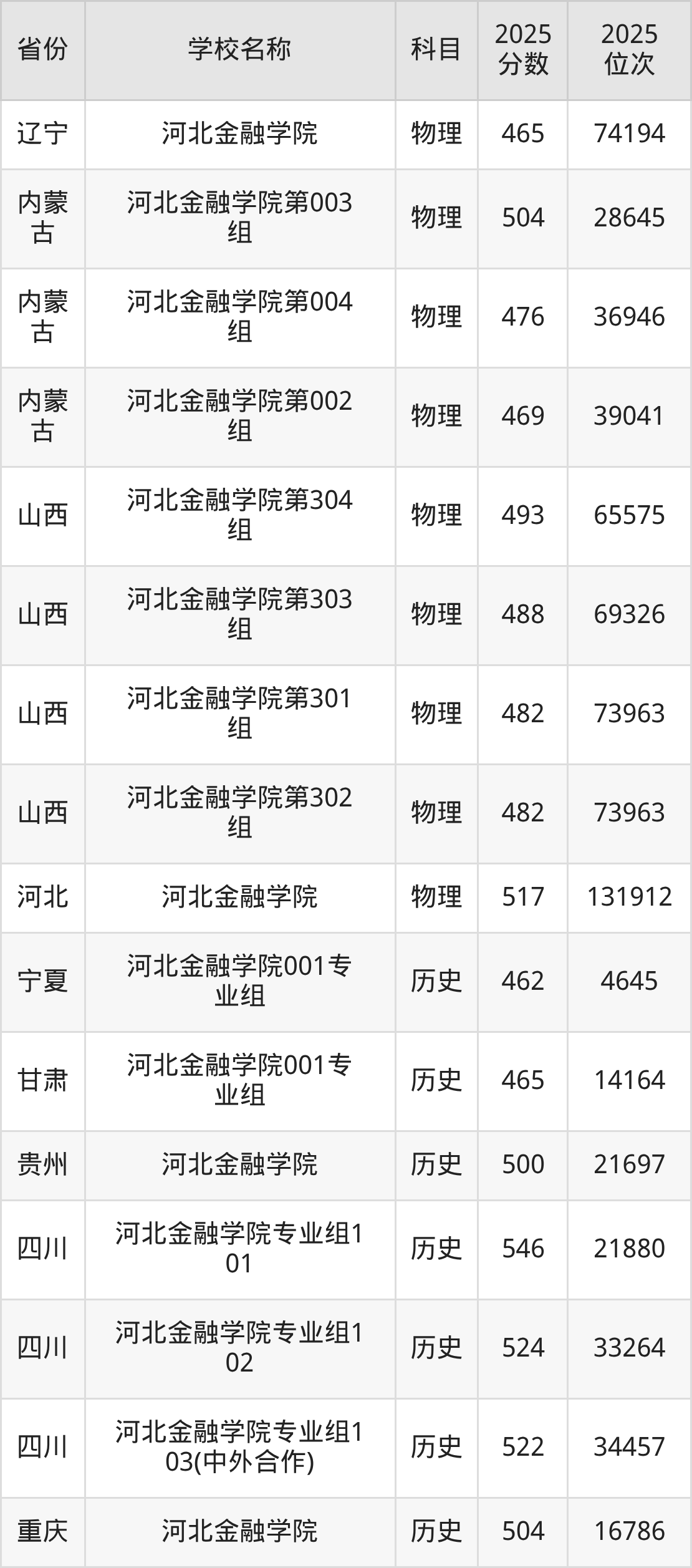 二、河北金融学院各专业录取分数线