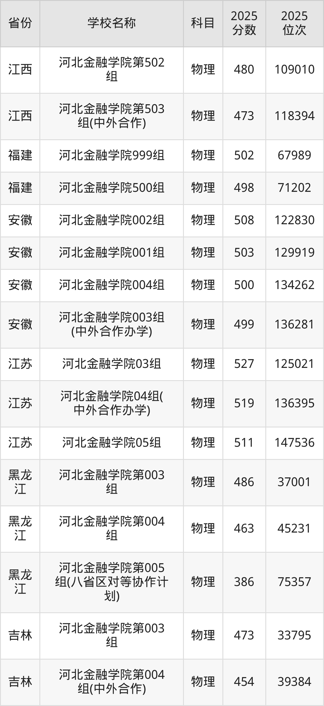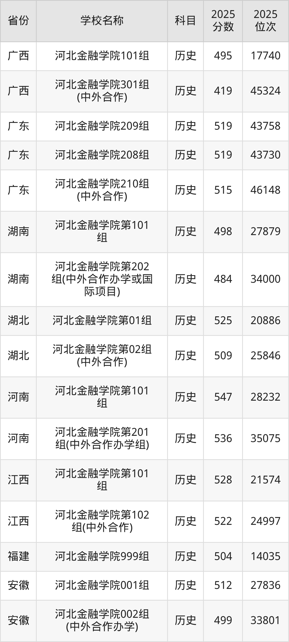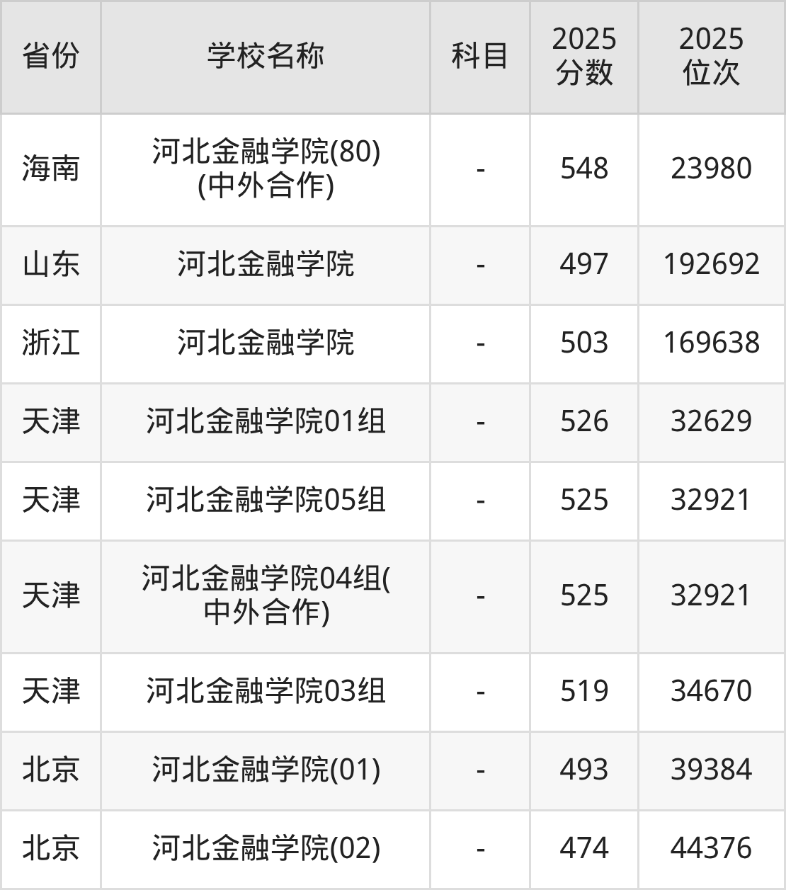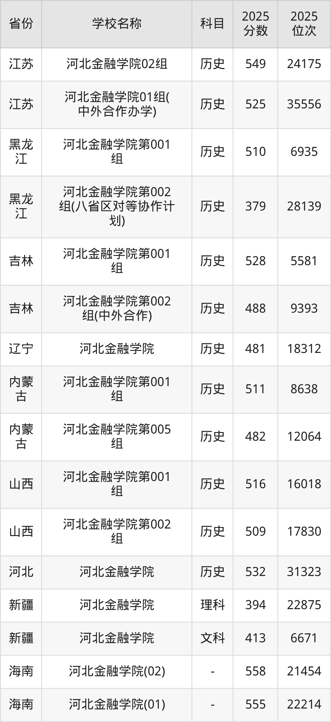 一、2025河北金融学院录取分数线