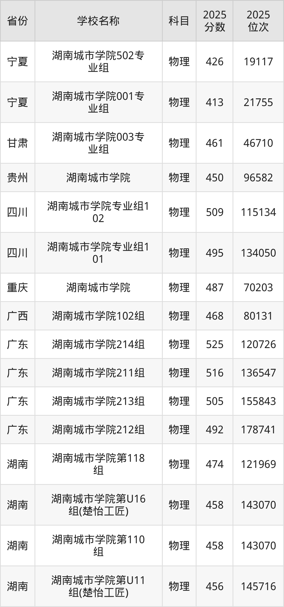湖南城市学院2025年有9个专业组面向湖南省内首选了物理科目的考生招生: