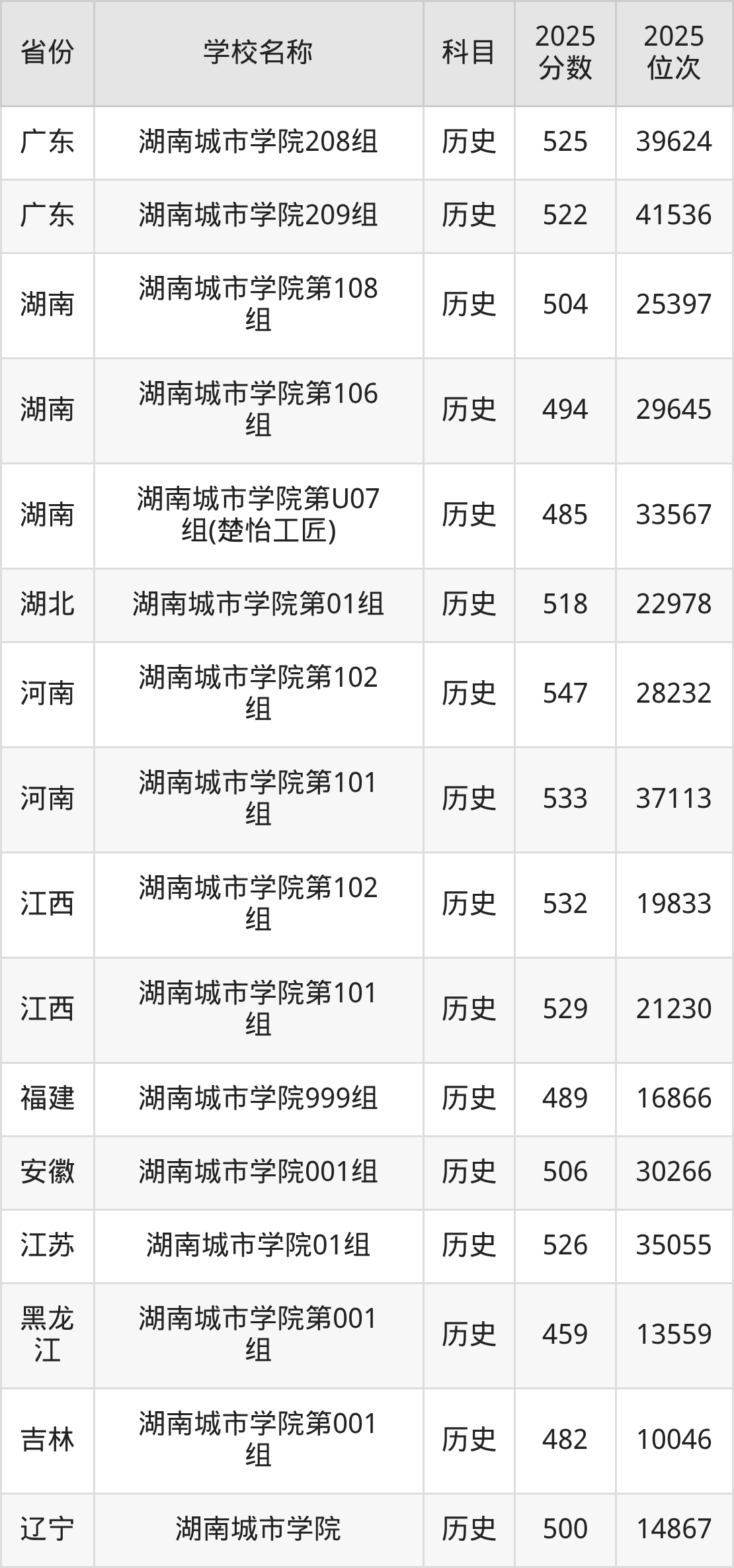 湖南城市学院2025年有3个专业组面向湖南省内首选了历史科目的考生招生: