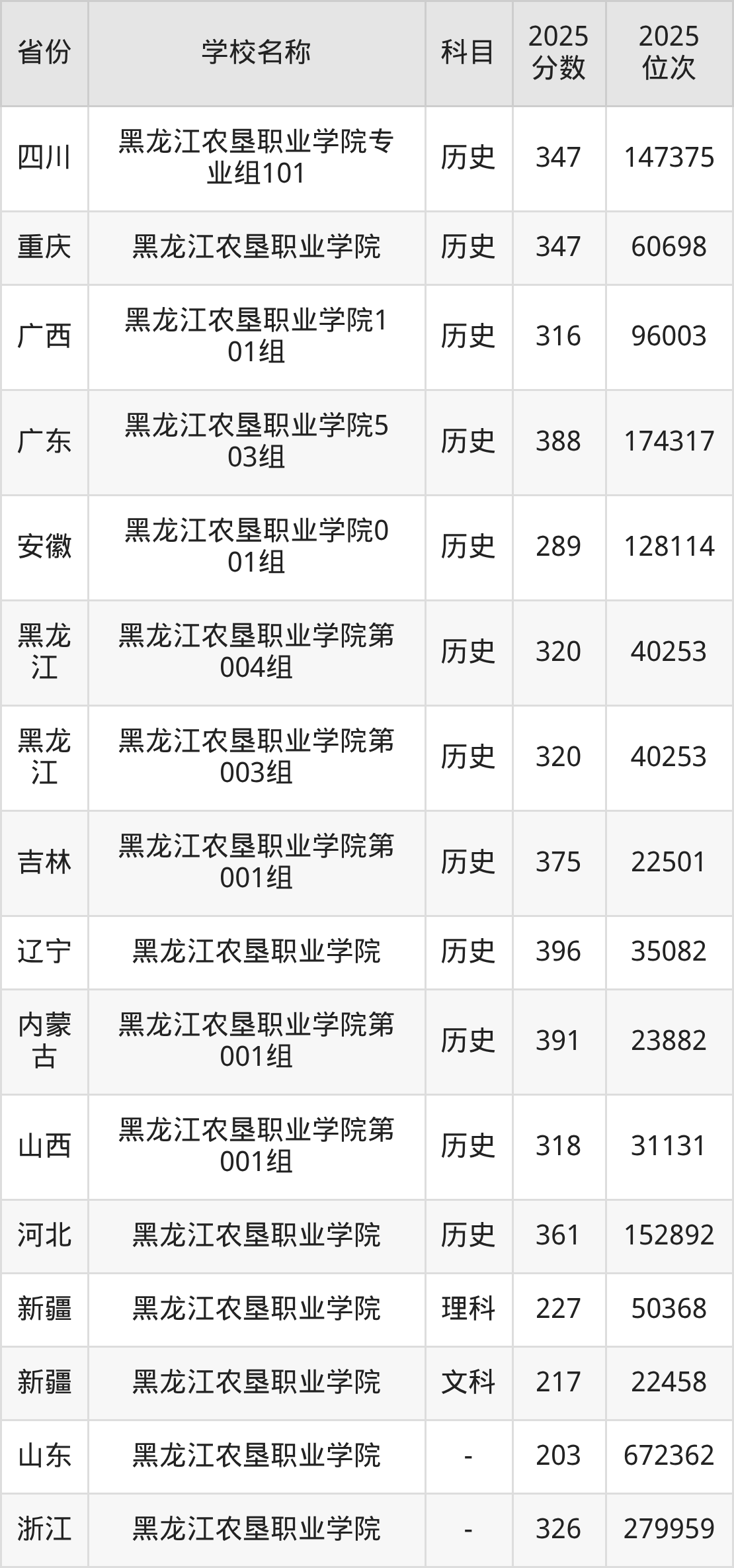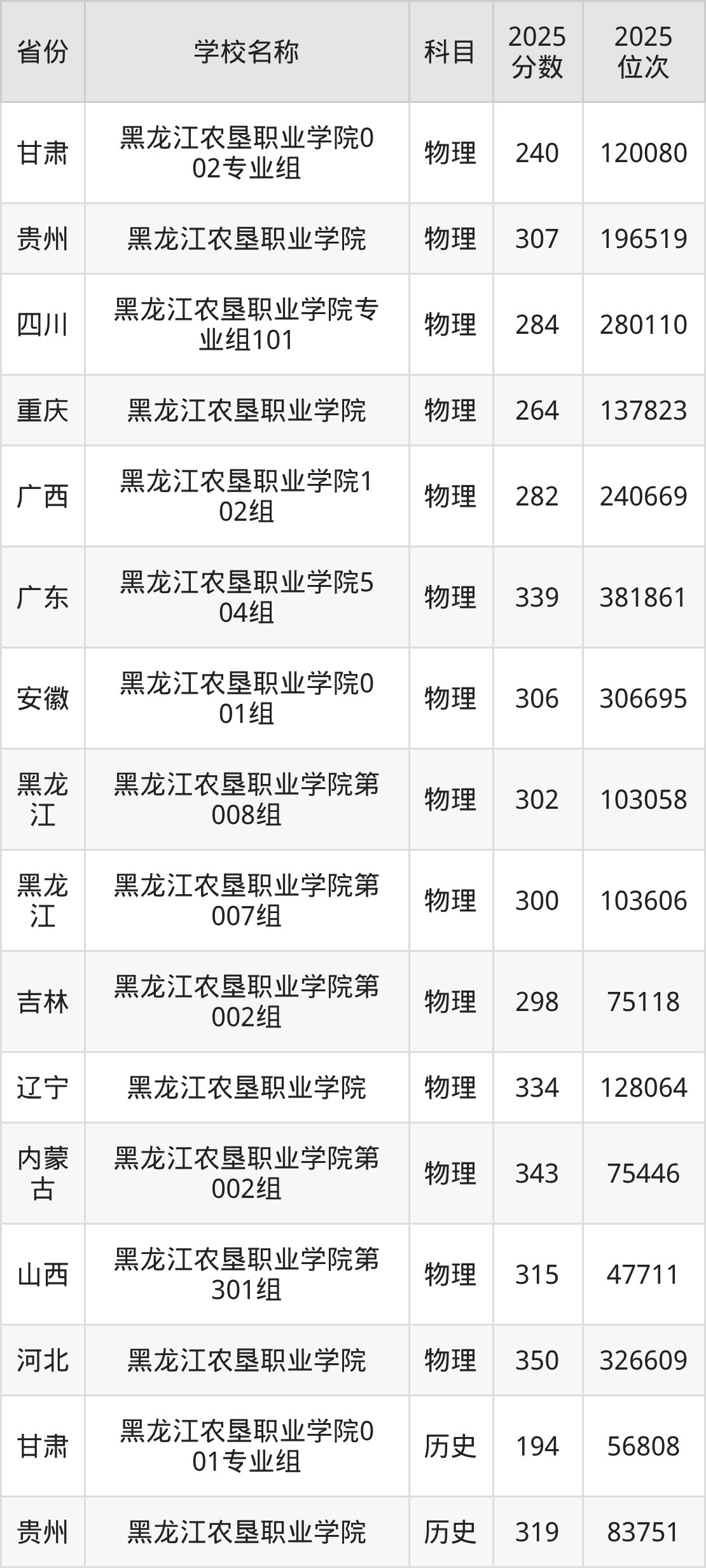 一、2025黑龙江农垦职业学院录取分数线
