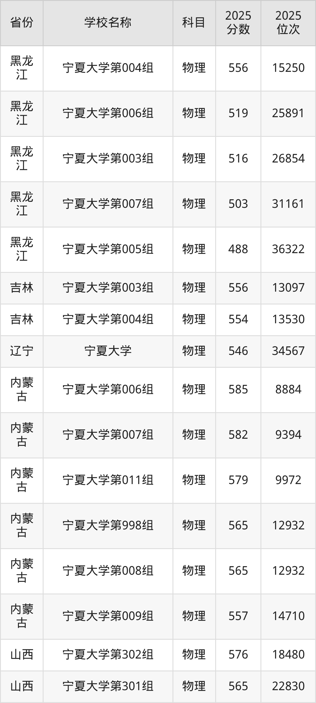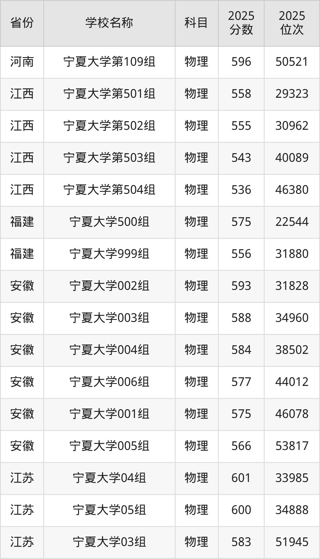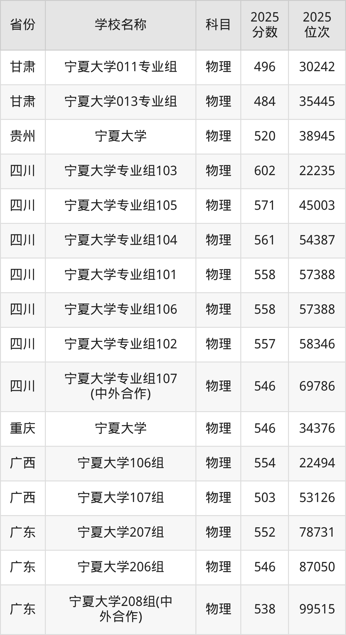宁夏大学2025年有25个专业组面向宁夏回族自治区内首选了物理科目的考生招生:
