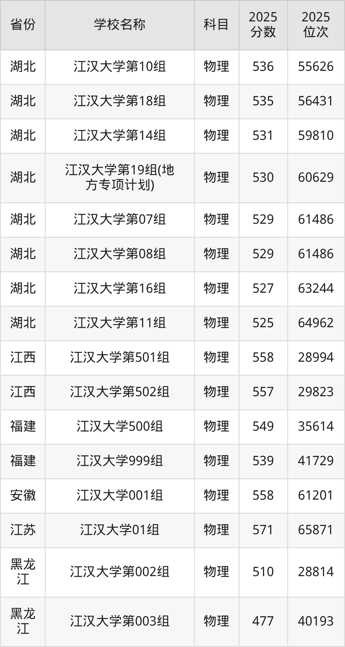 江汉大学2025年有13个专业组面向湖北省内首选了物理科目的考生招生: