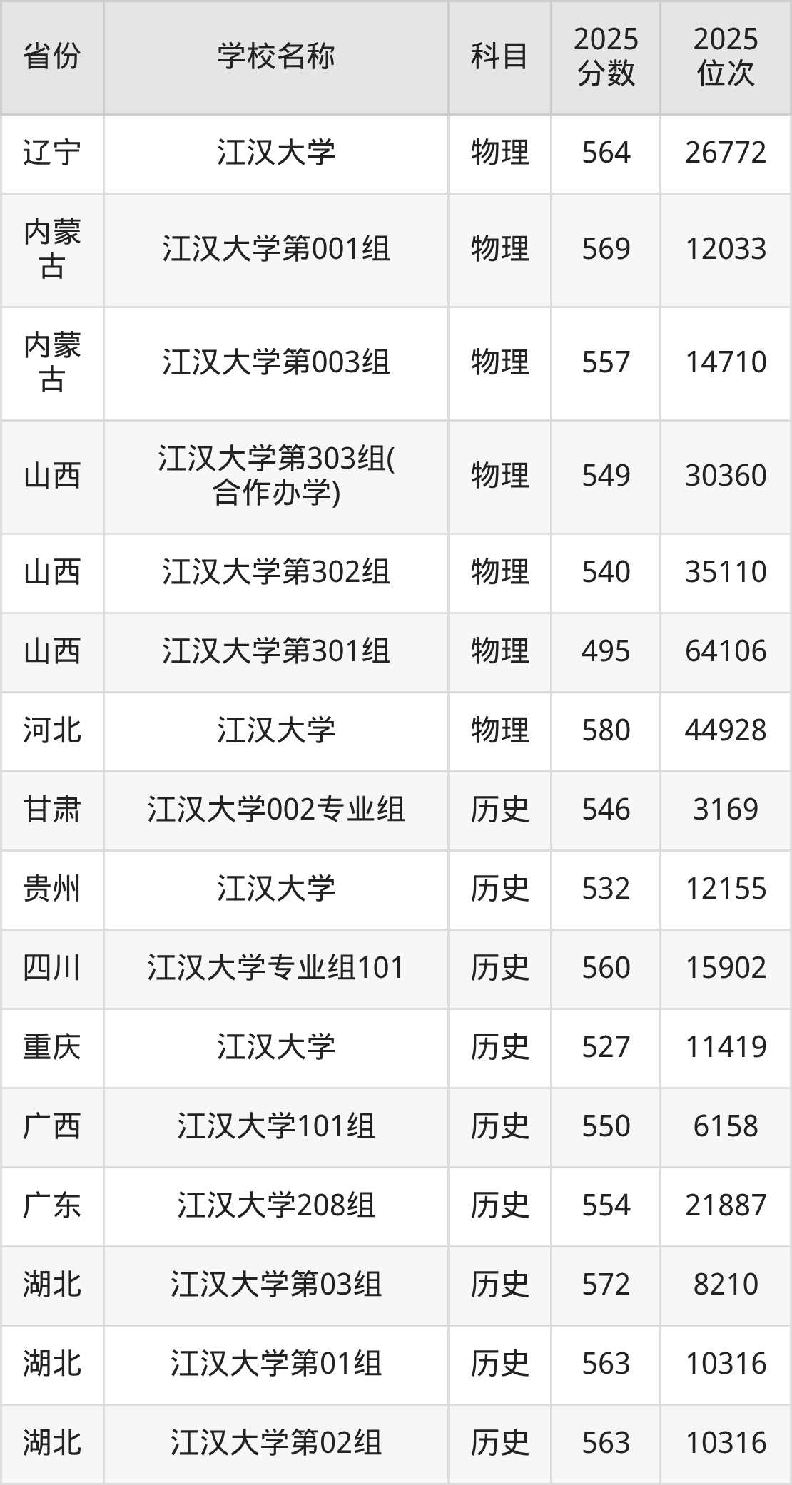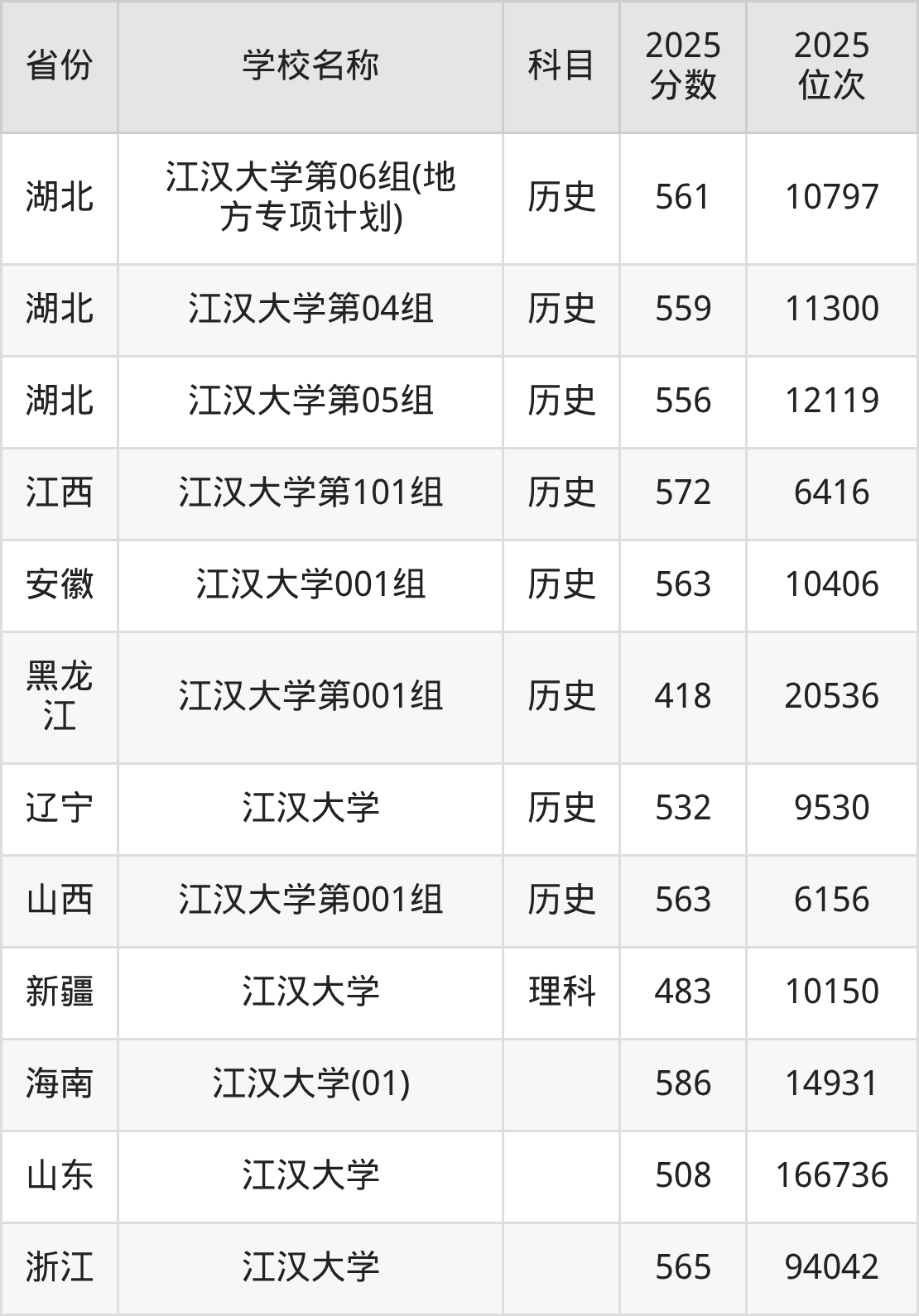 江汉大学2025年有6个专业组面向湖北省内首选了历史科目的考生招生: