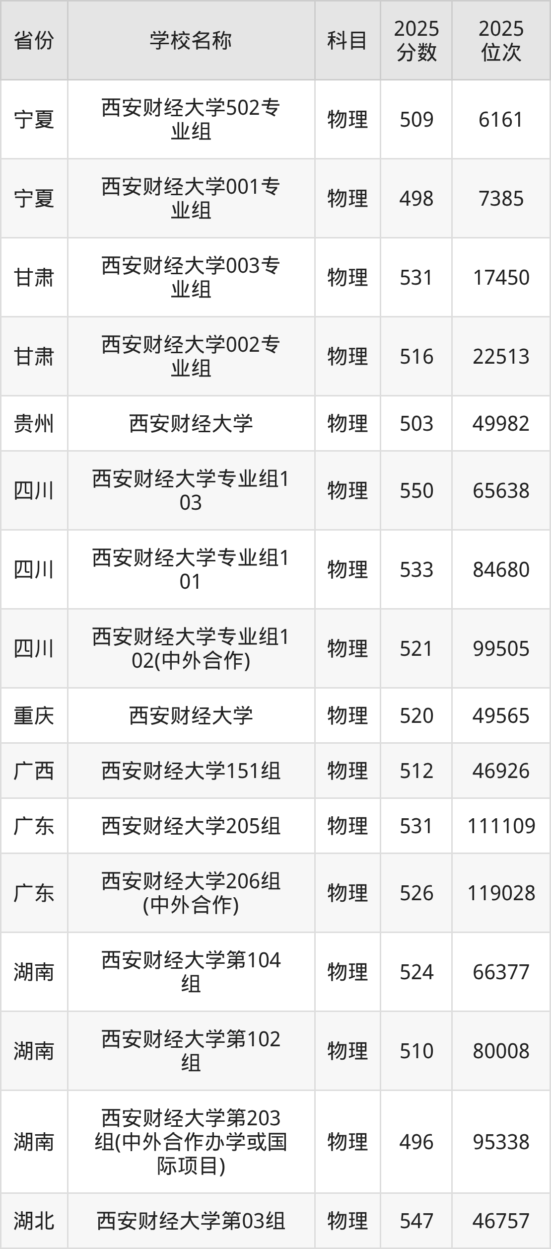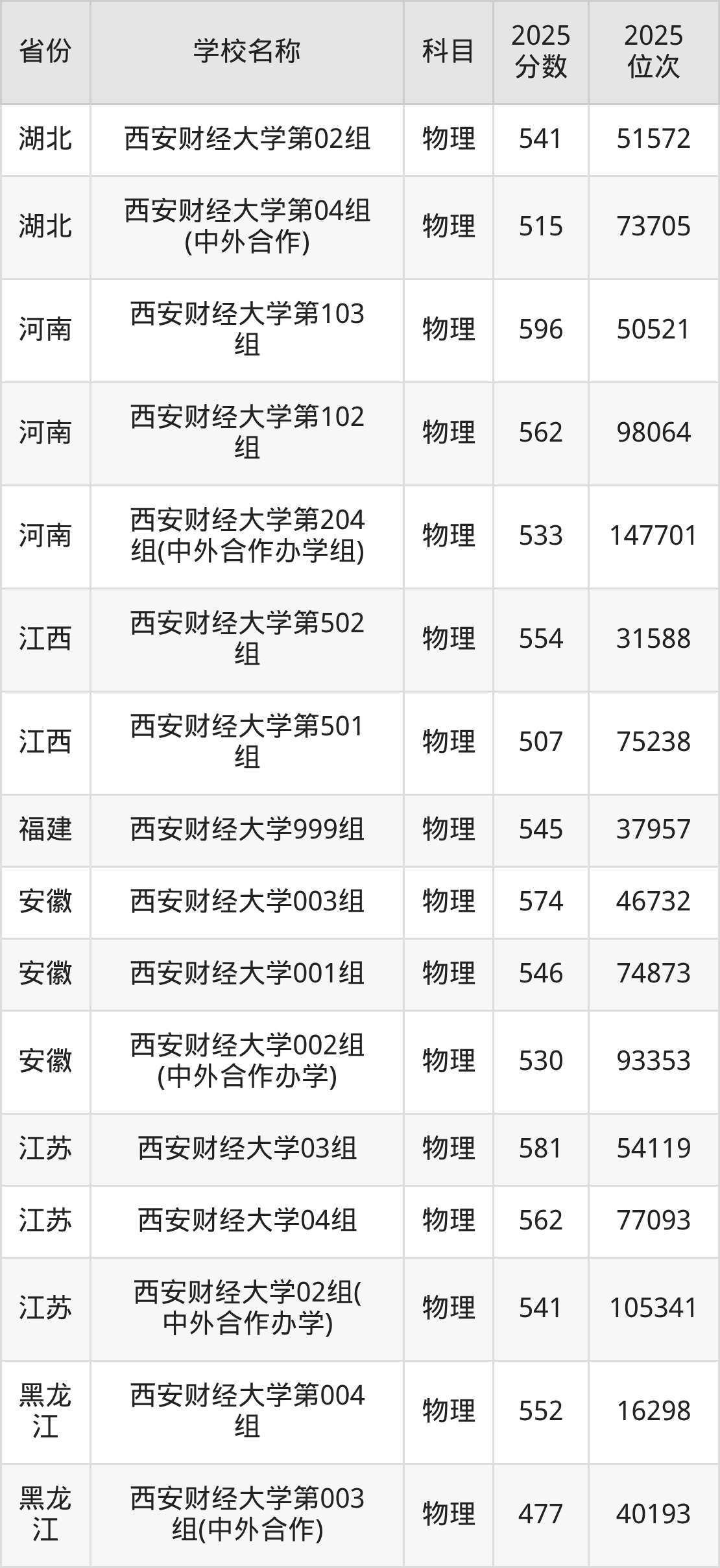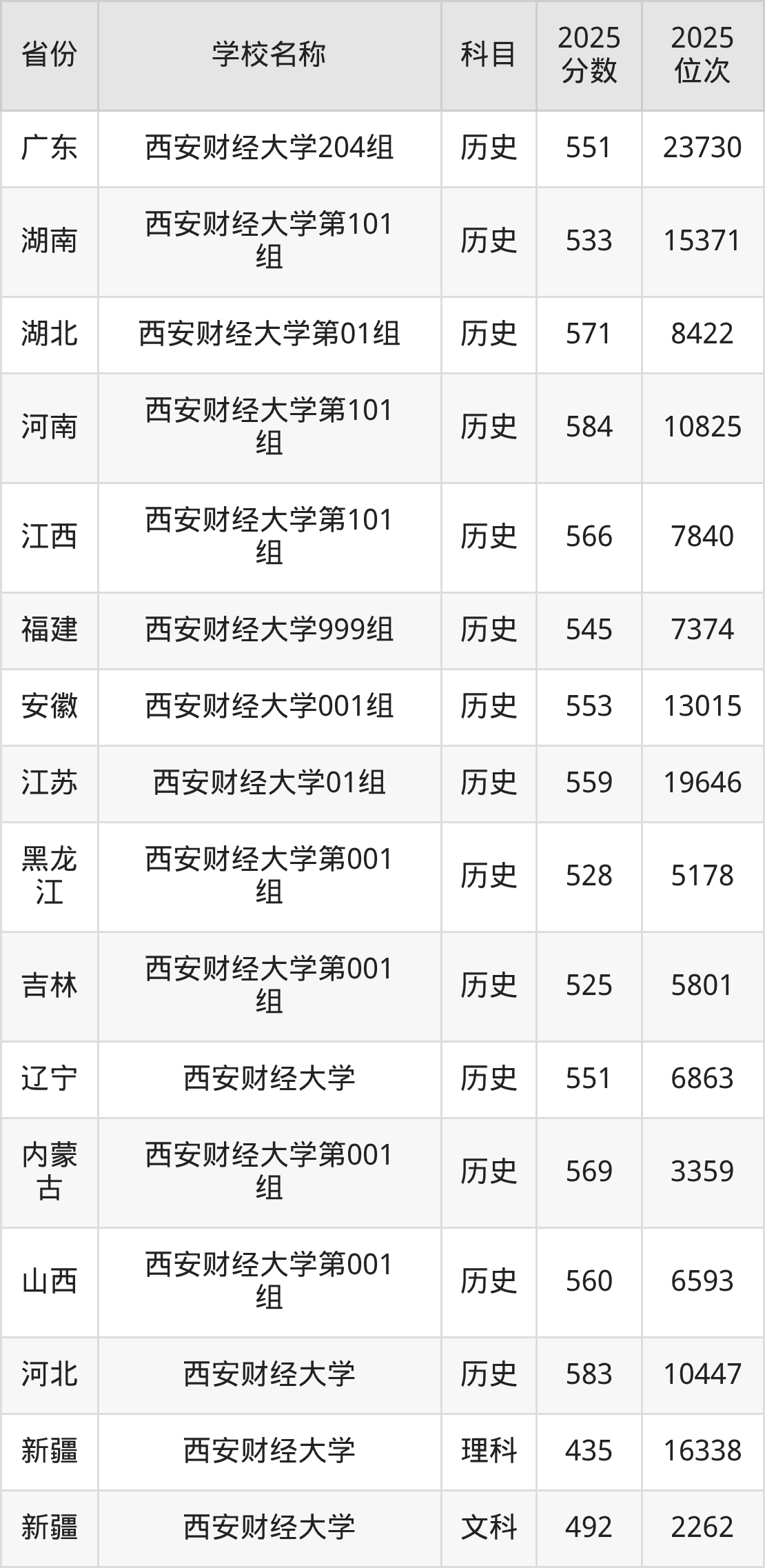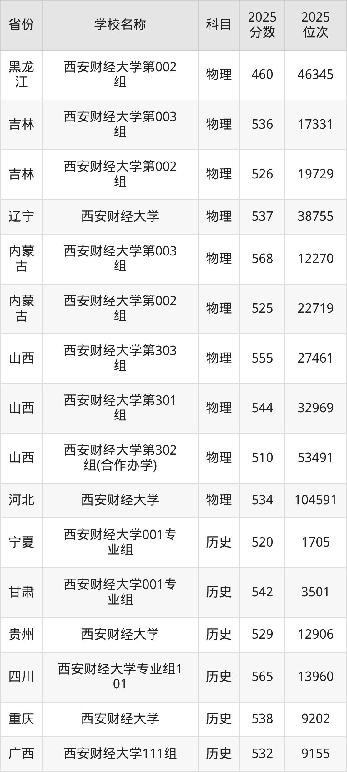 二、西安财经大学各专业录取分数线