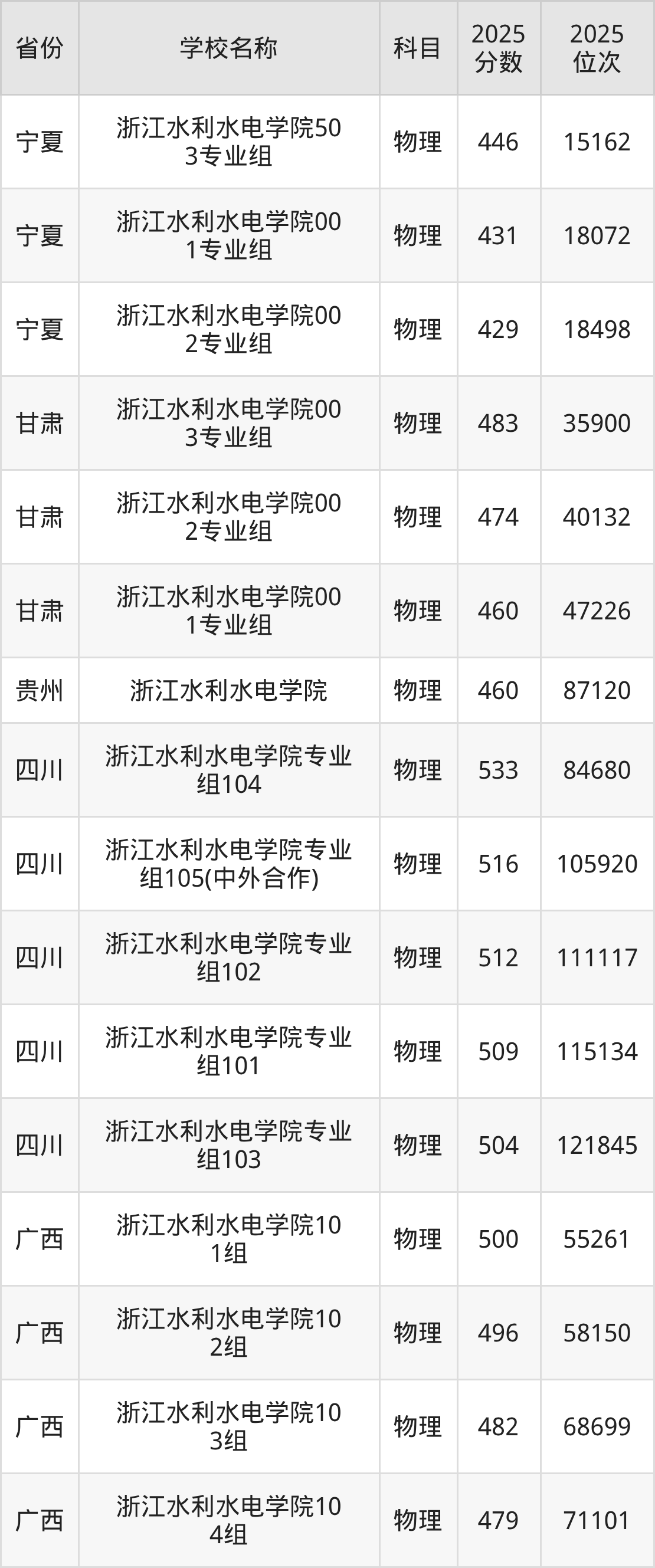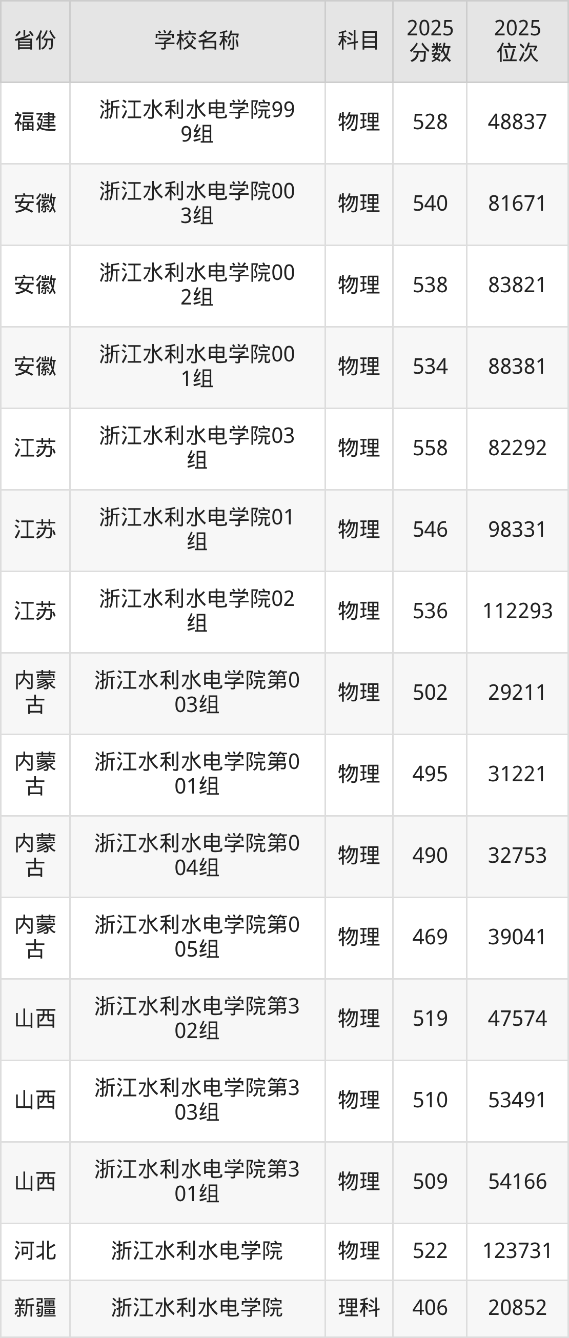 8、水利水电工程专业:2025年最低560分、最低位次是99428