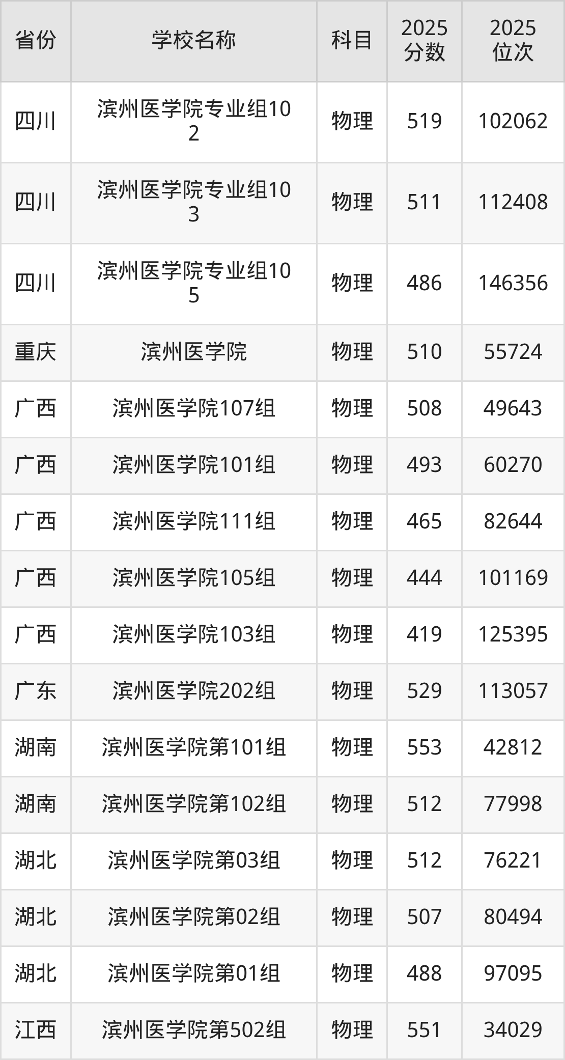 19、康复物理治疗专业:2025年最低496分、最低位次是195301