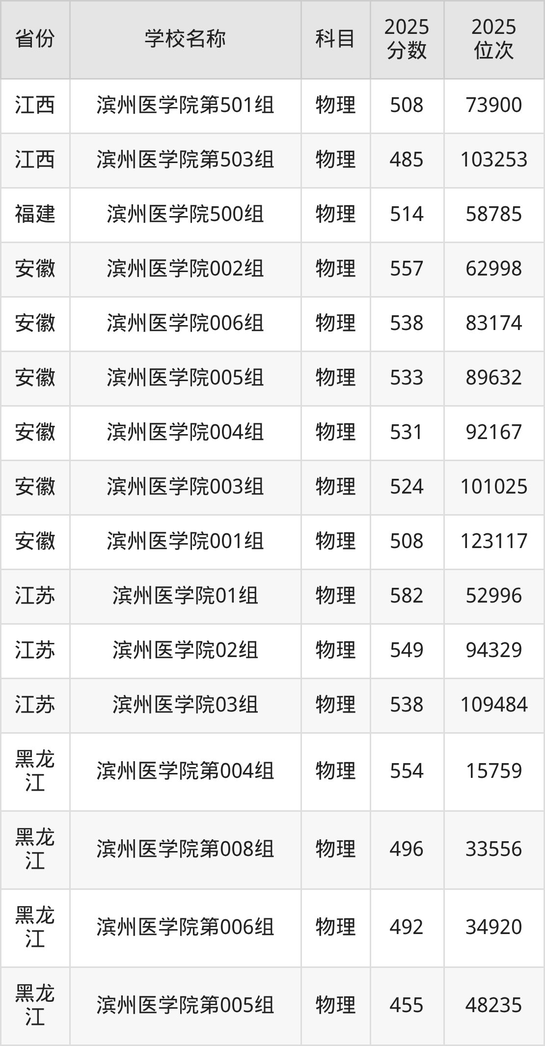2025年滨州医学院在全国各省本科的最低录取分数线在419~596分之间。天津高考生最低596分能上滨州医学院、江苏物理类高考生最低582分能上滨州医学院……下文将展示滨州医学院在全国25个高考省份中的本科最低投档录取分汇总!