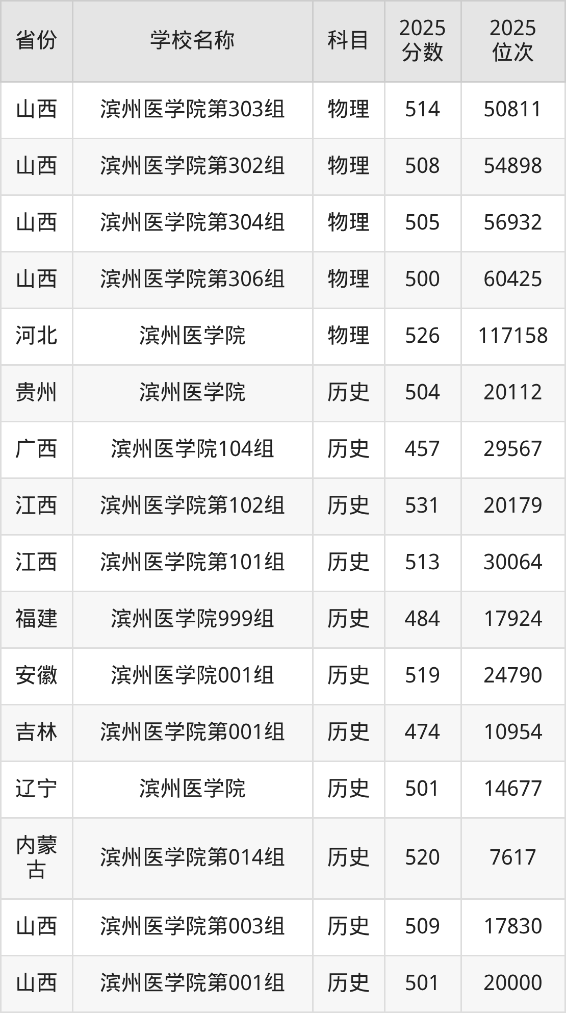 滨州医学院2025年录取分数线最高的专业是口腔医学(学费7920元)、收分最低的专业是康复治疗学(学费40000元)。