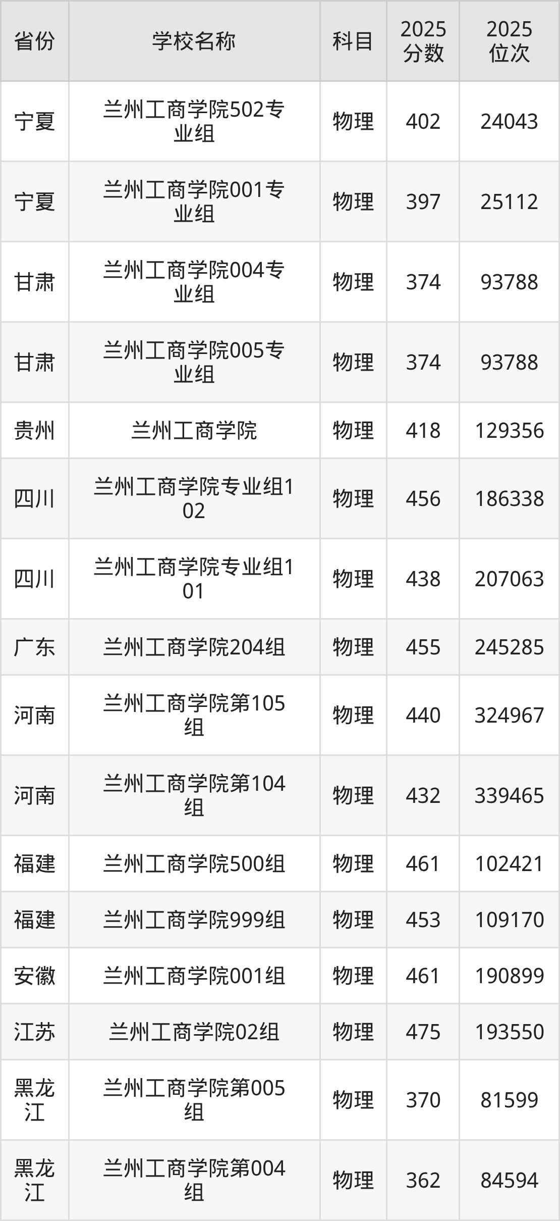兰州工商学院2025年有2个专业组面向甘肃省内首选了物理科目的考生招生: