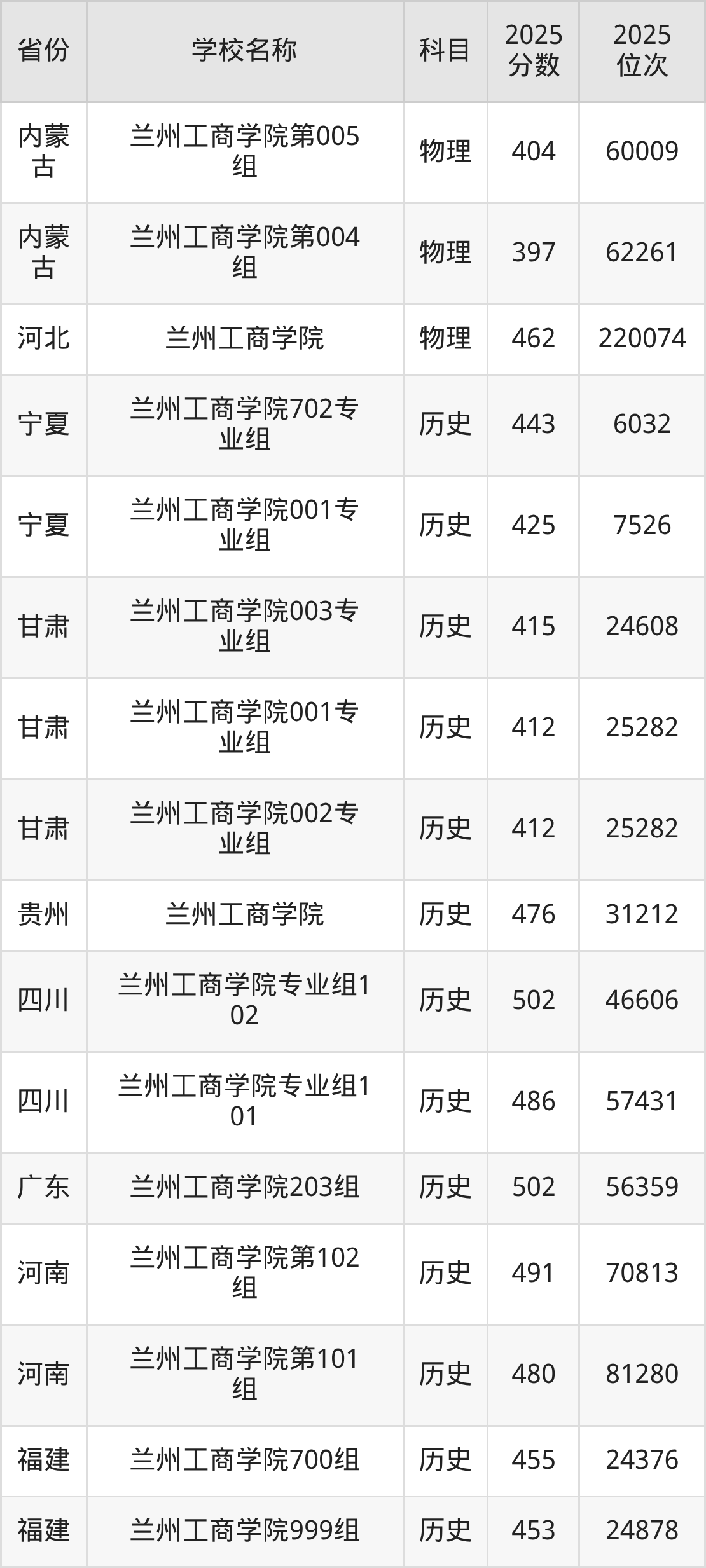 二、兰州工商学院各专业录取分数线