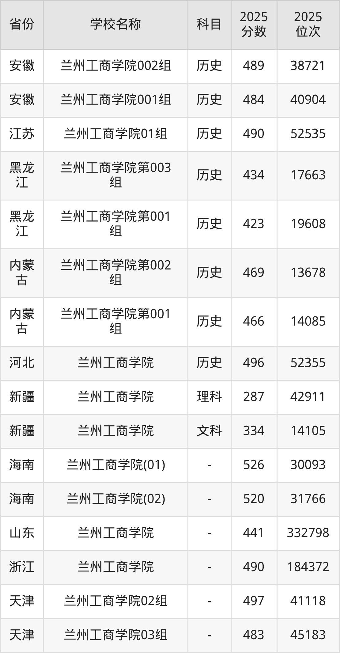 兰州工商学院2025年有3个专业组面向甘肃省内首选了历史科目的考生招生: