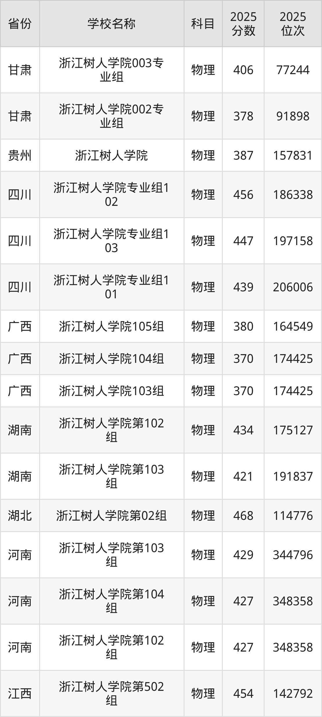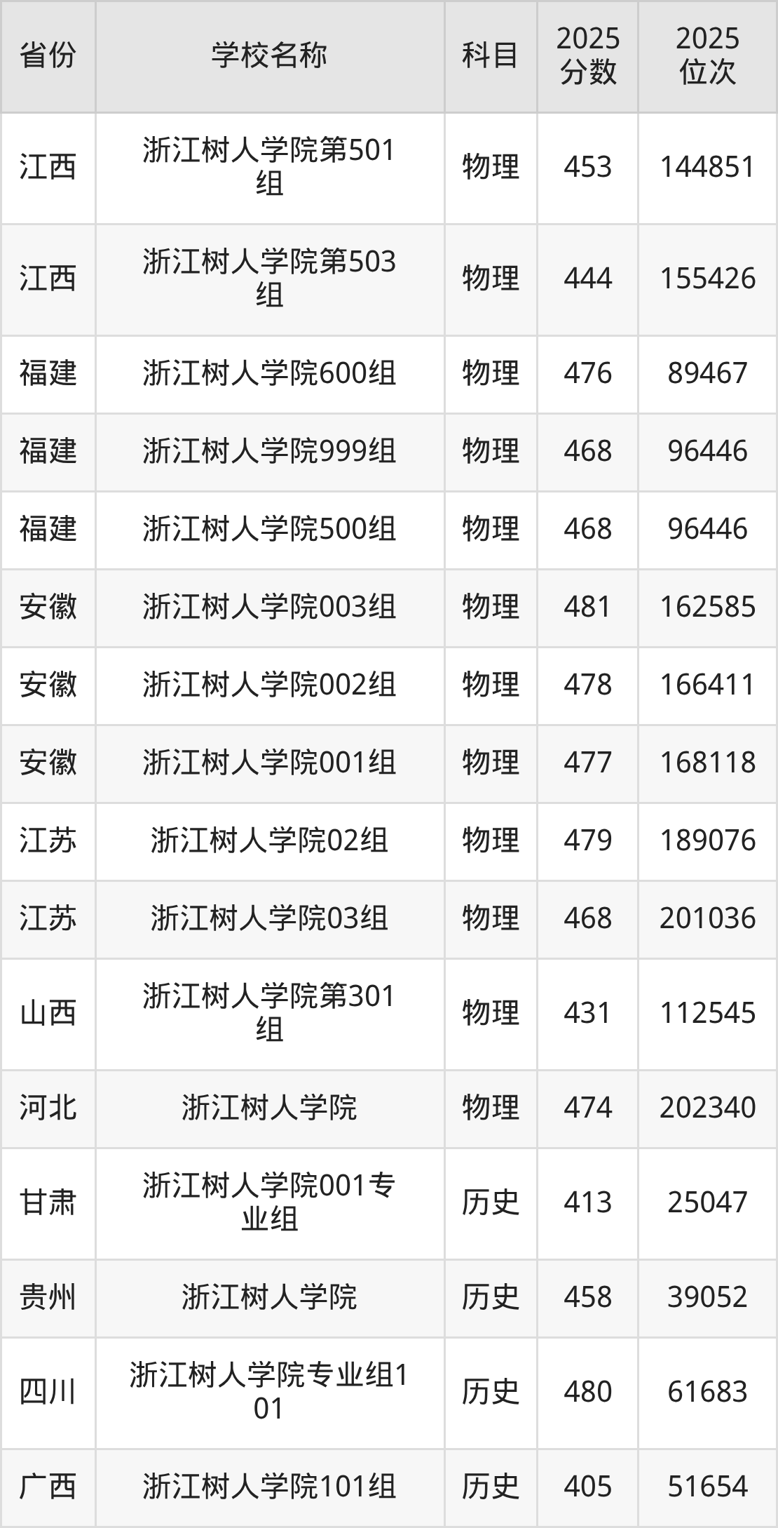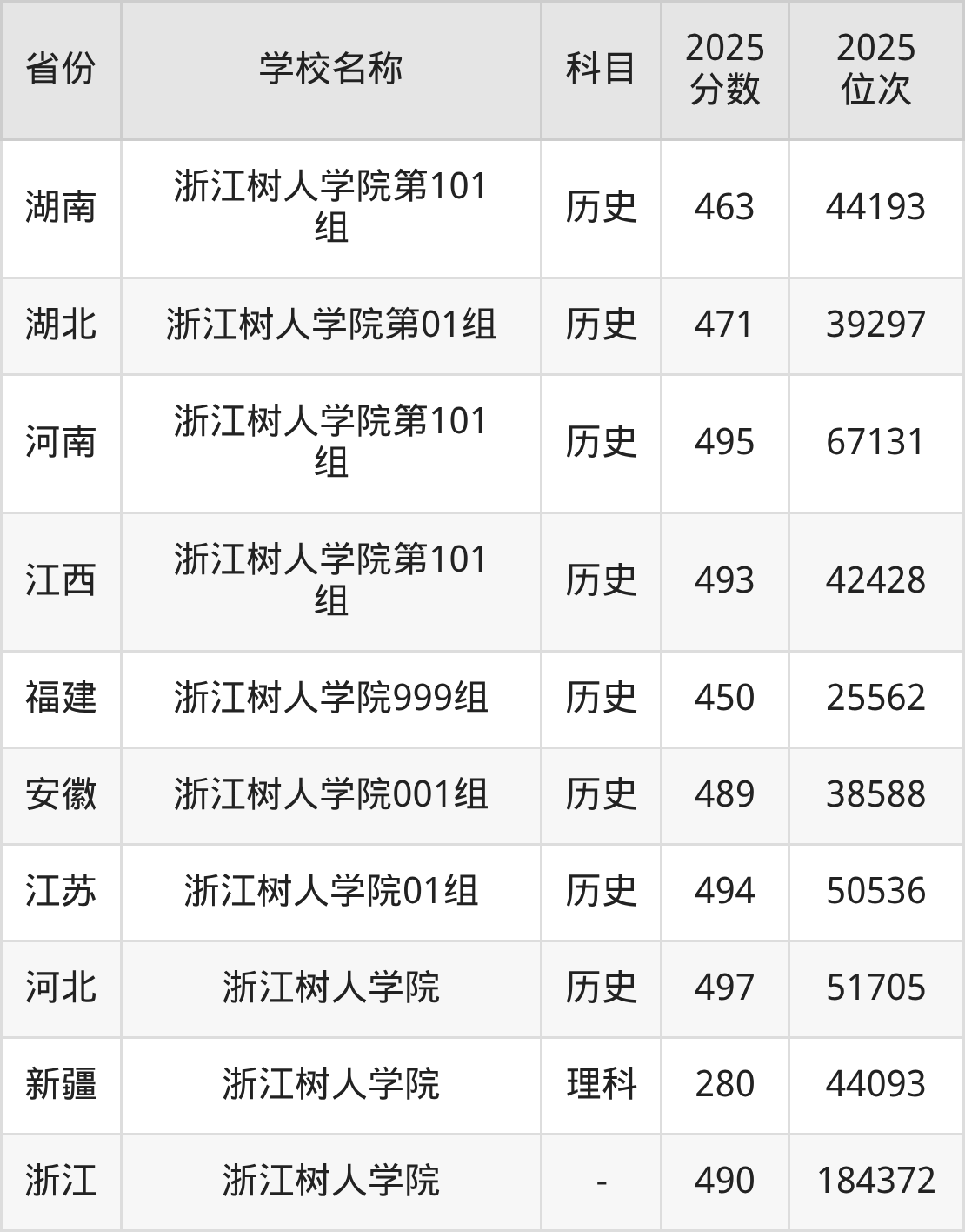一、2025浙江树人学院录取分数线