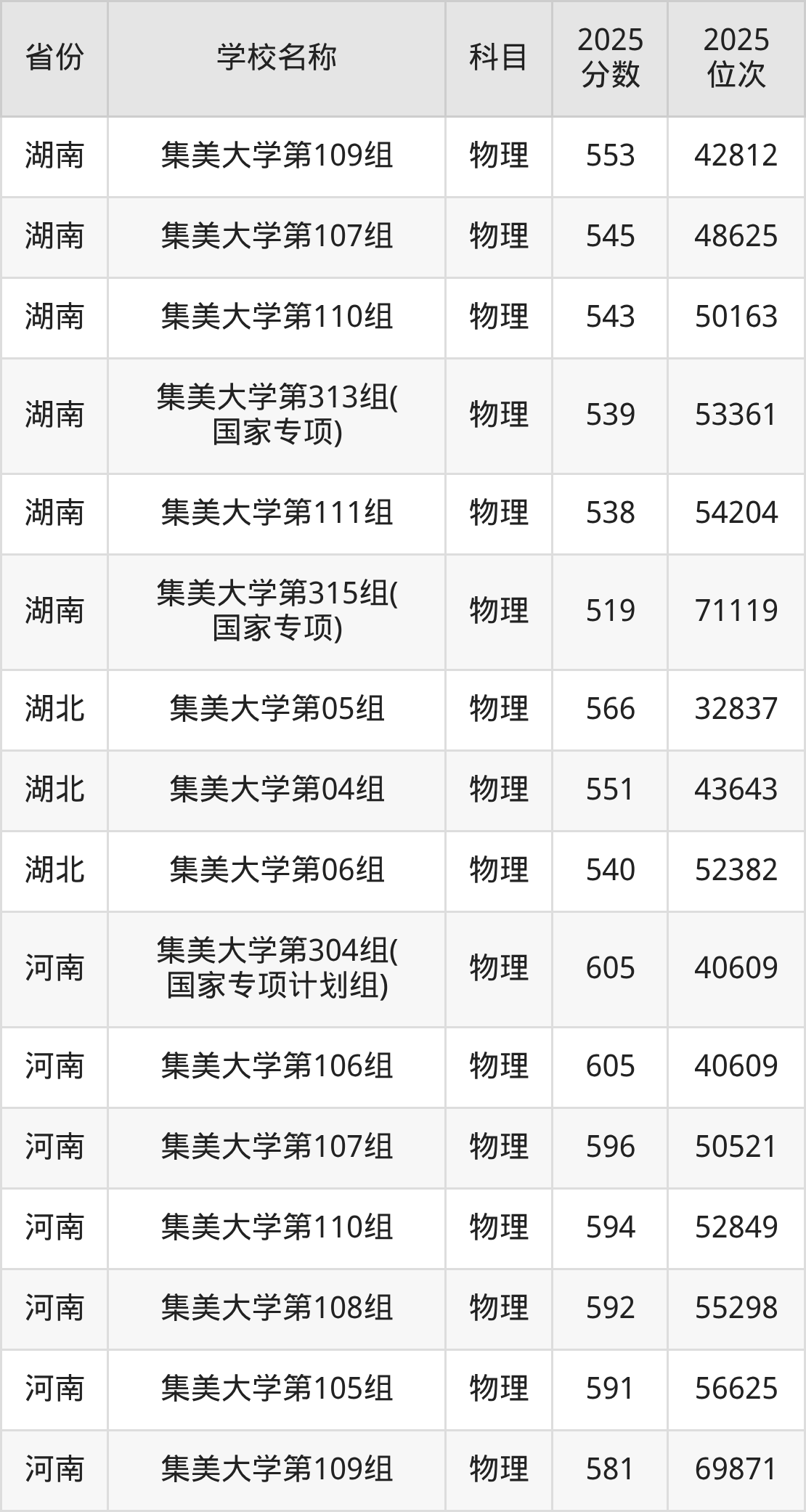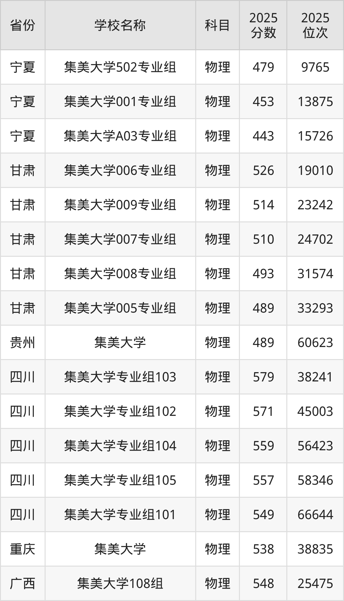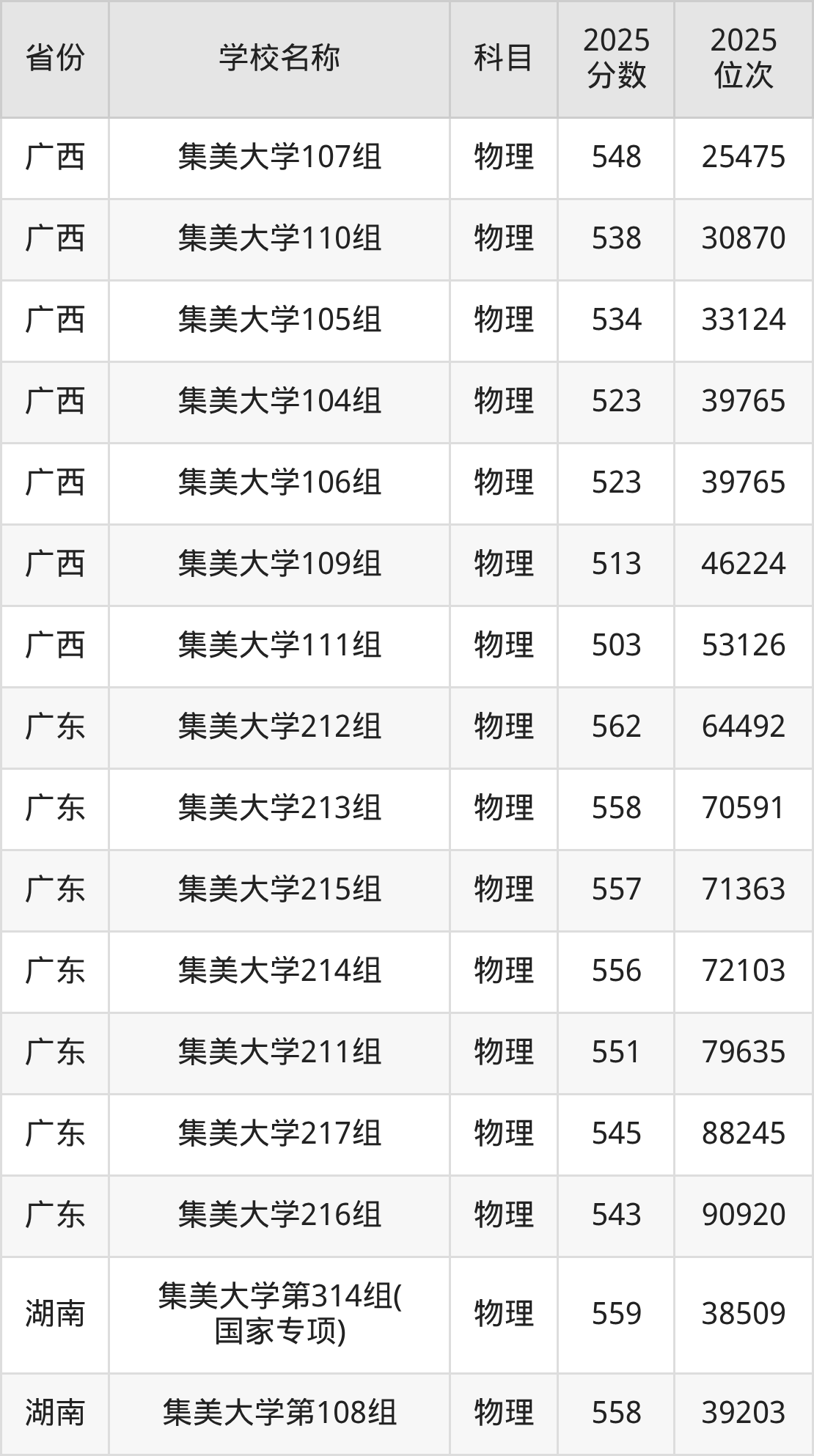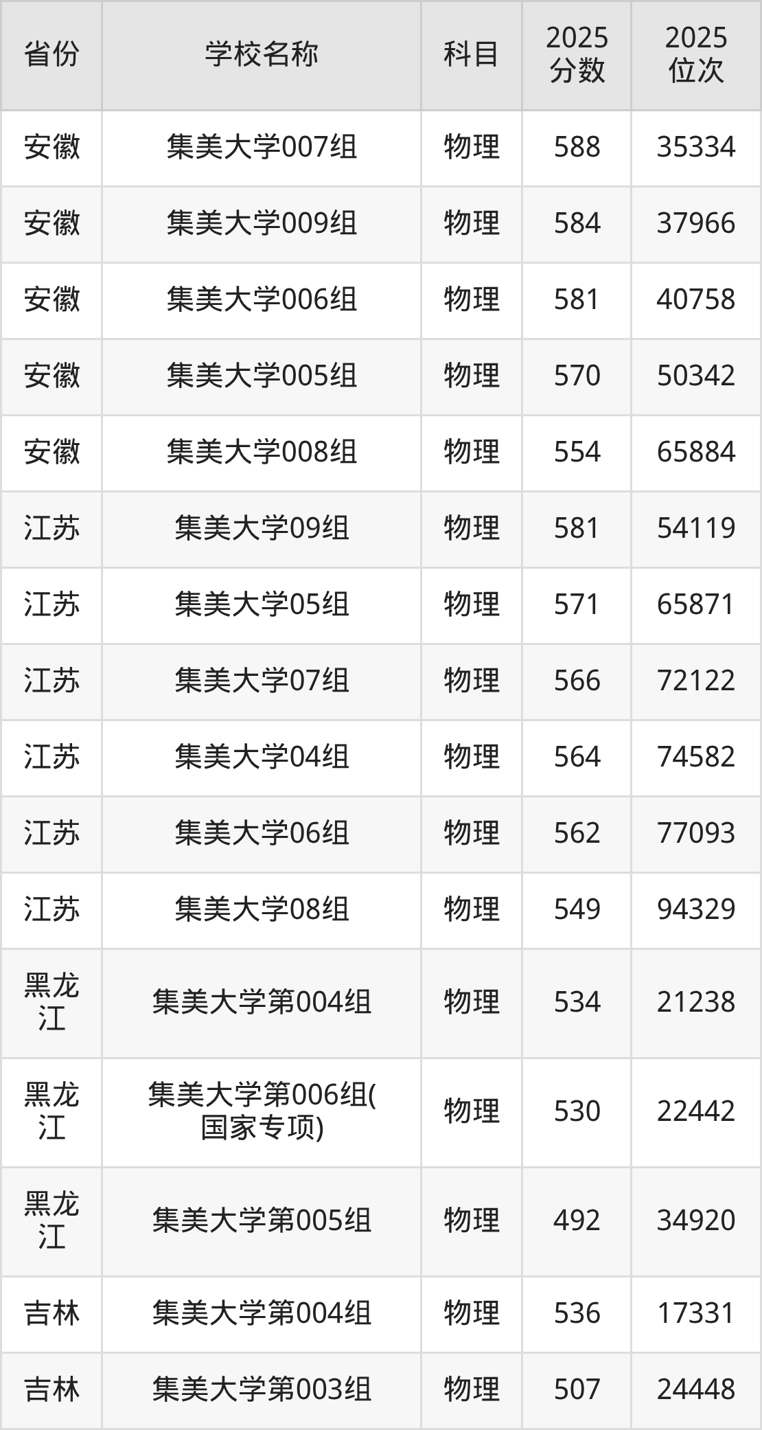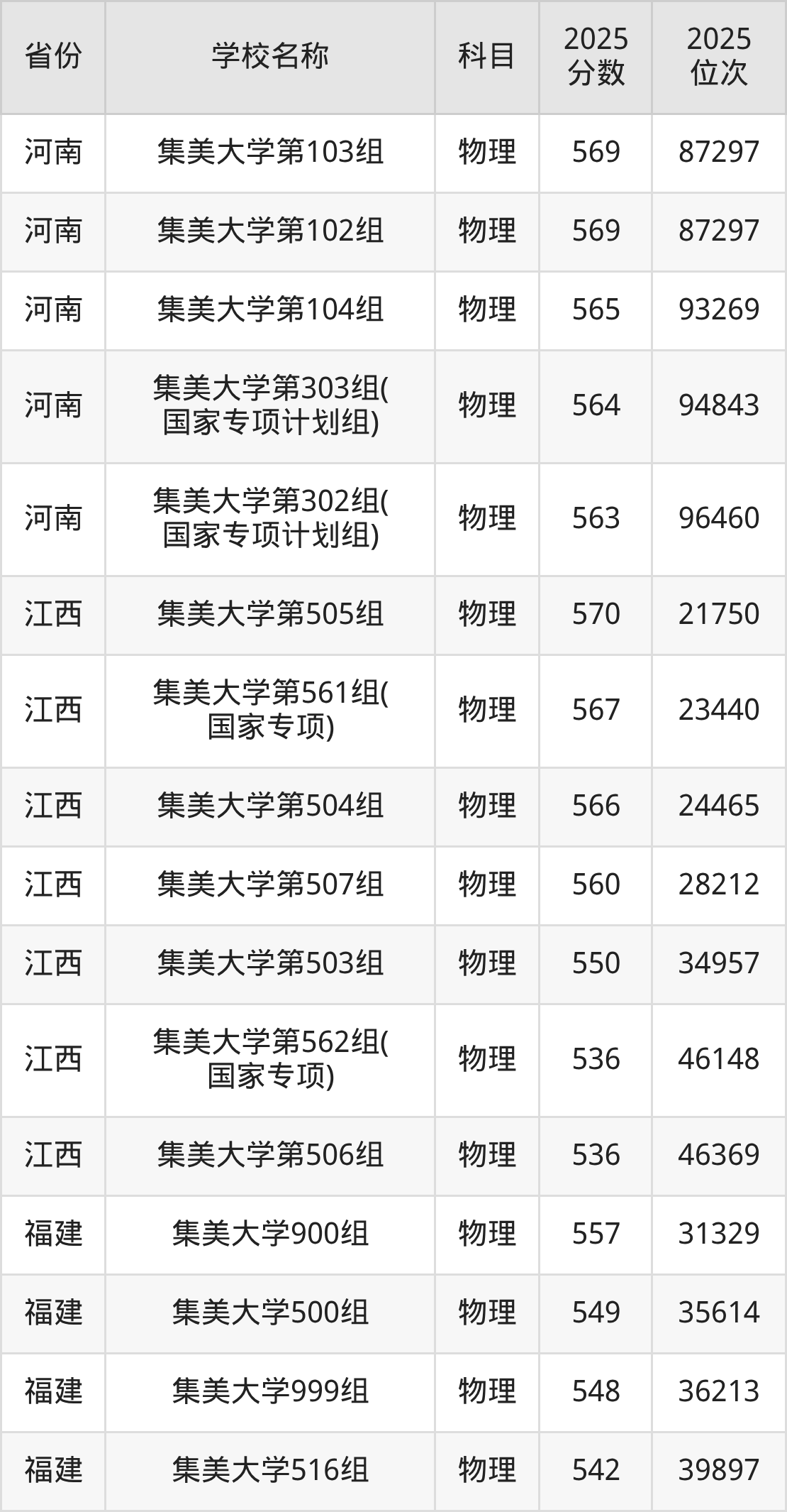 集美大学2025年有9个专业组面向福建省内首选了物理科目的考生招生: