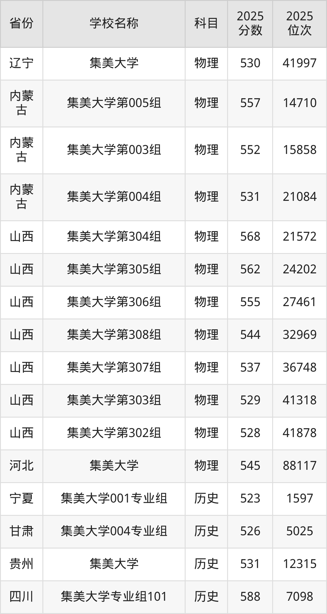 可见,集美大学的不同专业组,在“招生专业、录取分数线”等方面有较大区别。物理类专业组之间的分数线差距高达15分。