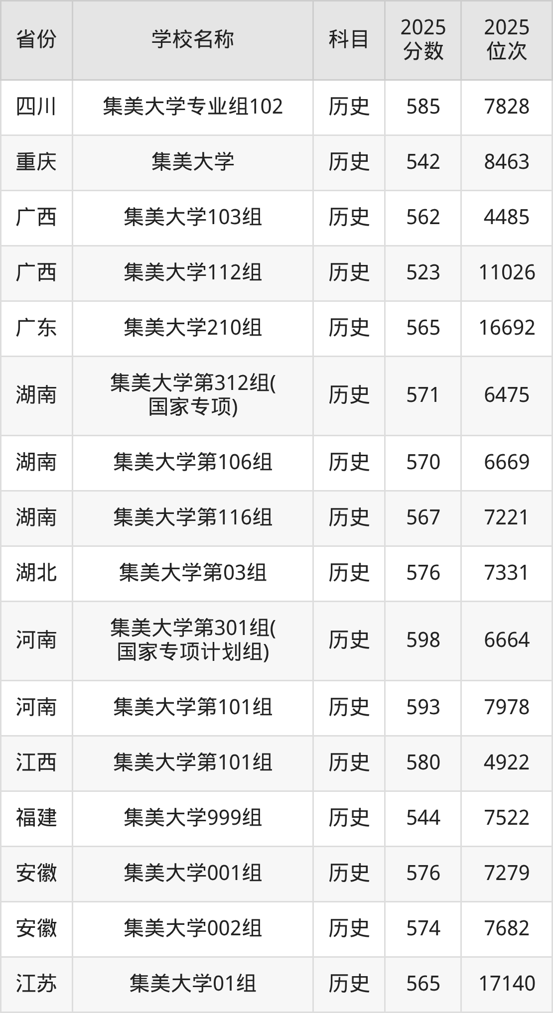 集美大学2025年有3个专业组面向福建省内首选了历史科目的考生招生: