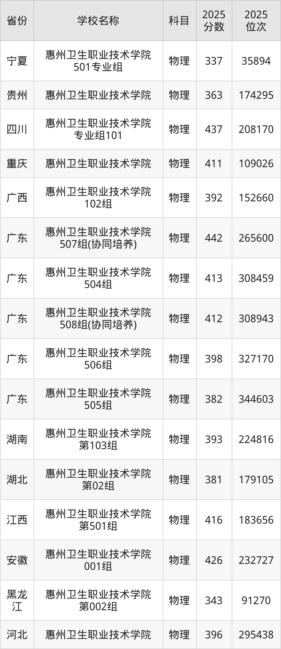 惠州卫生职业技术学院2025年有24个专业组面向广东省内首选了物理科目的考生招生: