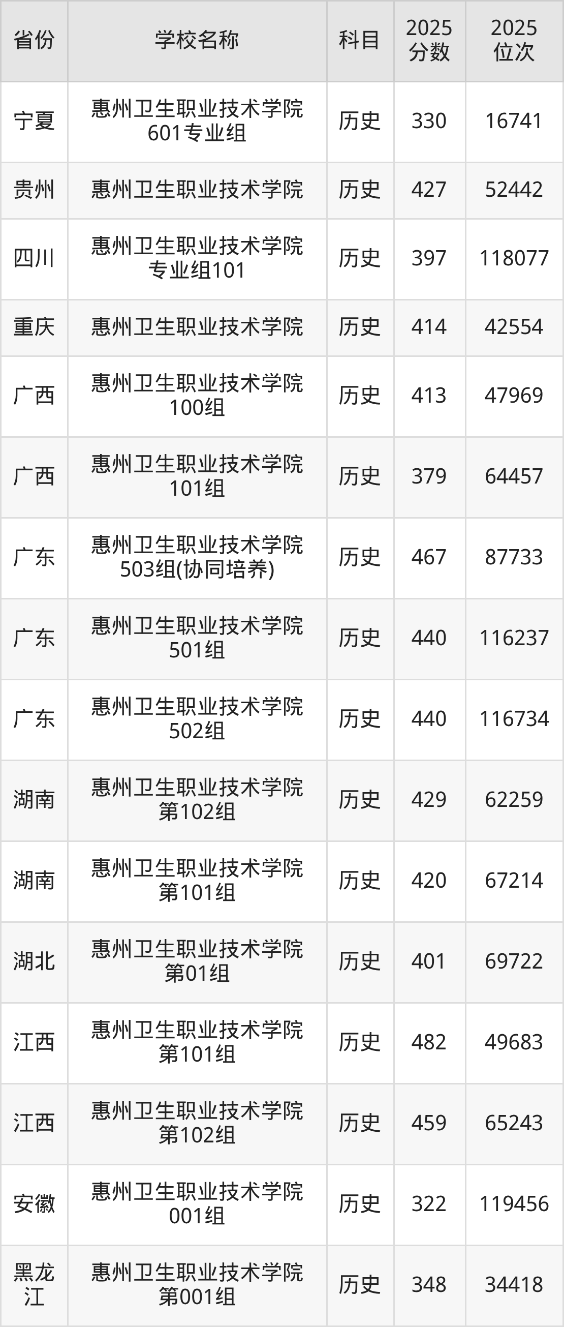 惠州卫生职业技术学院2025年有3个专业组面向广东省内首选了历史科目的考生招生: