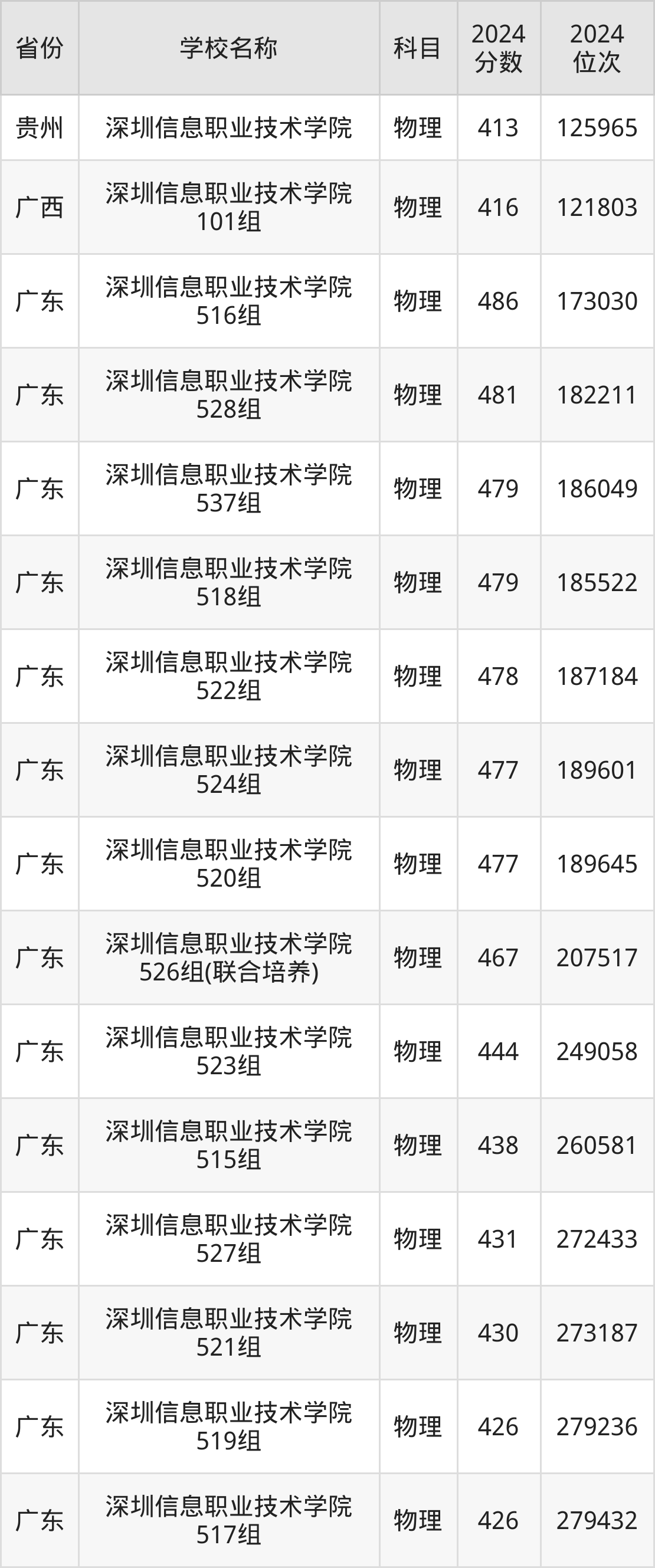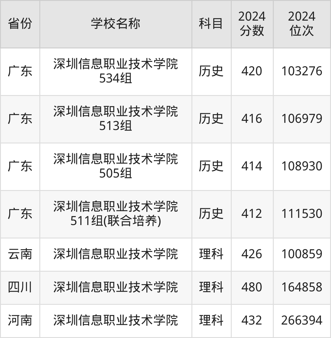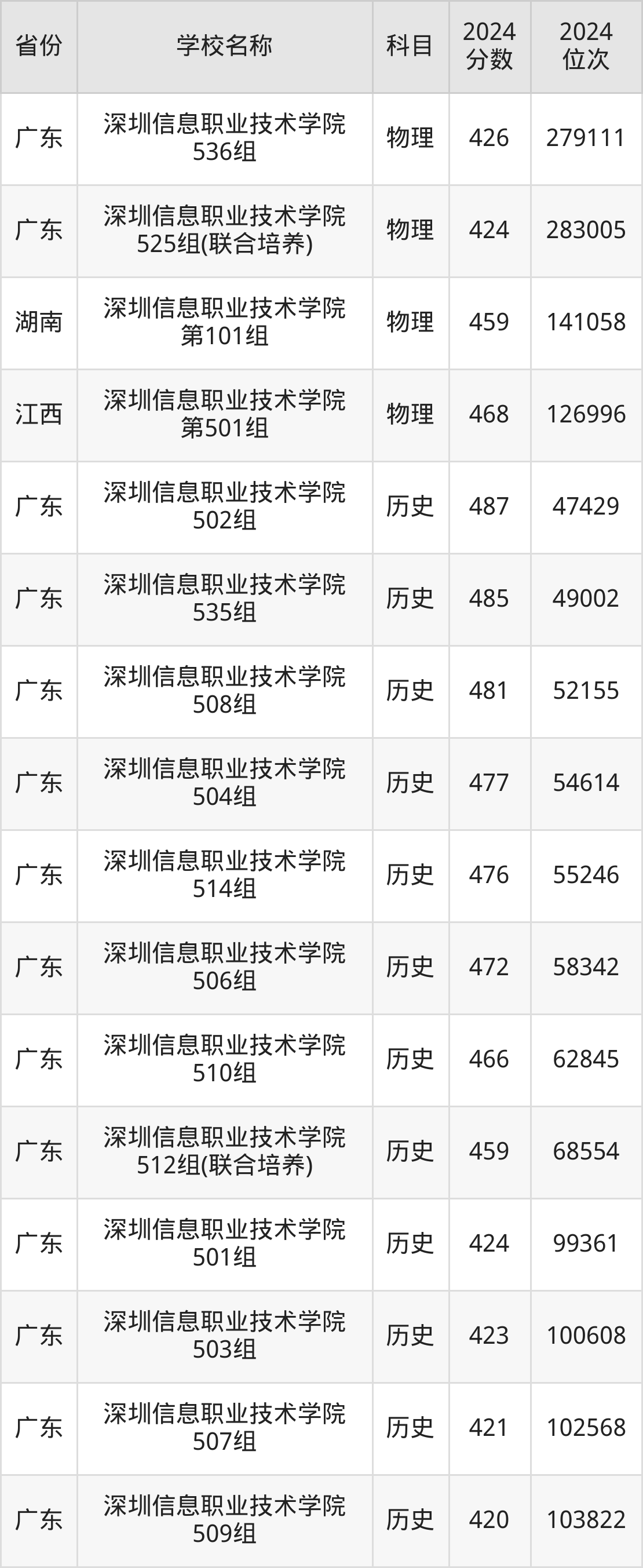 一、2024深圳信息职业技术学院录取分数线