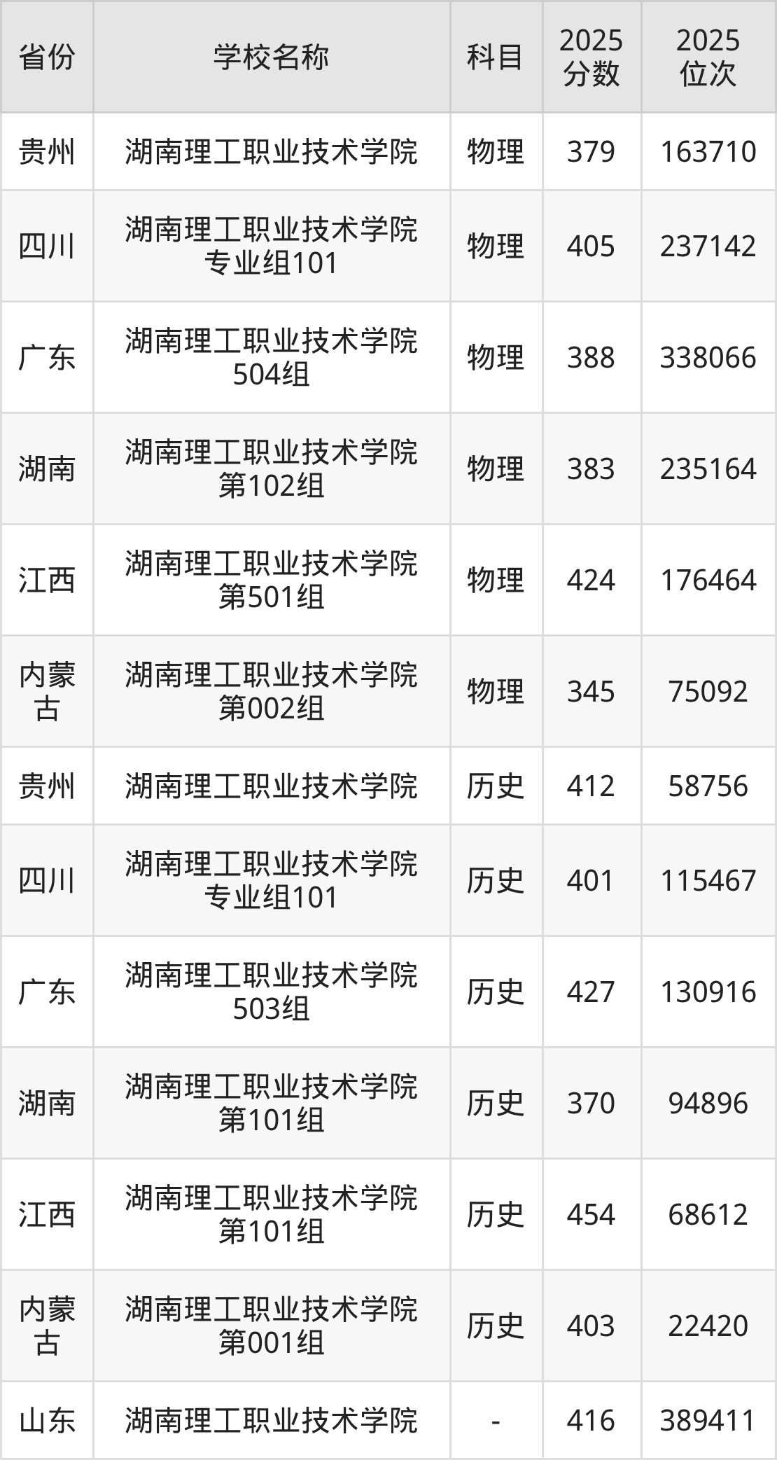 一、2025湖南理工职业技术学院录取分数线