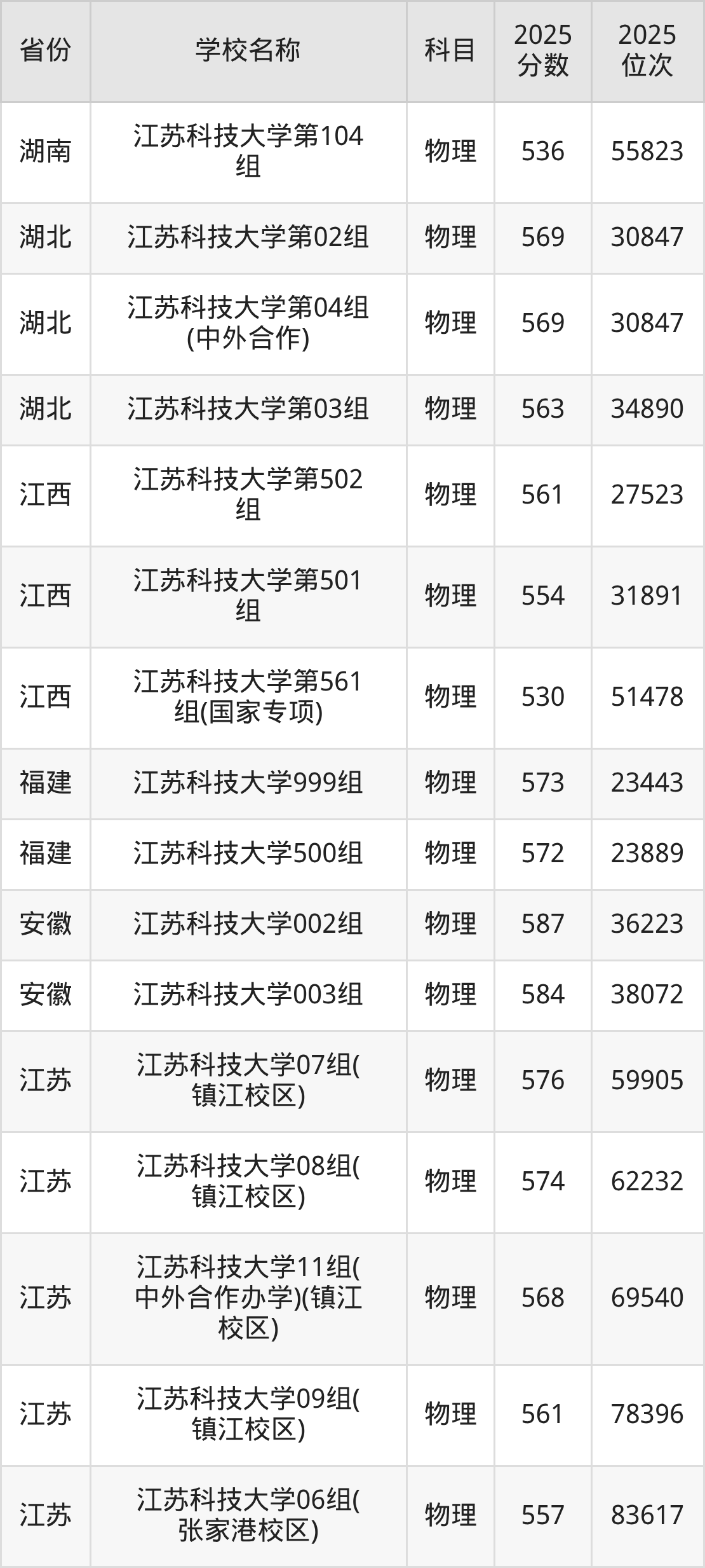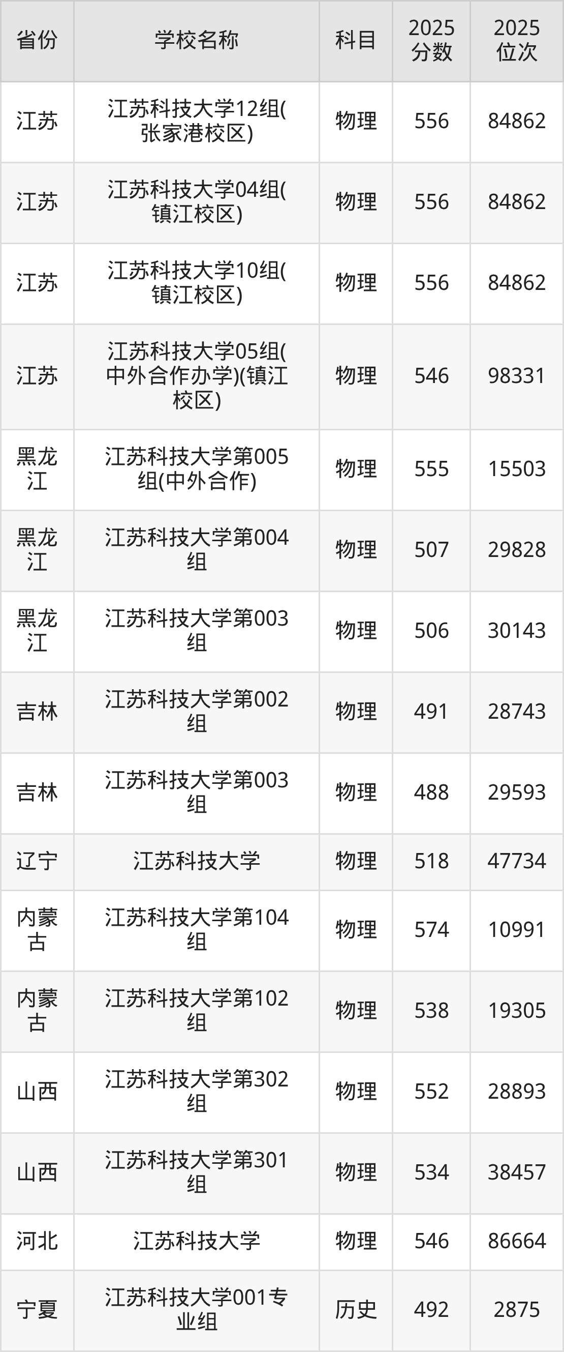 二、江苏科技大学各专业录取分数线