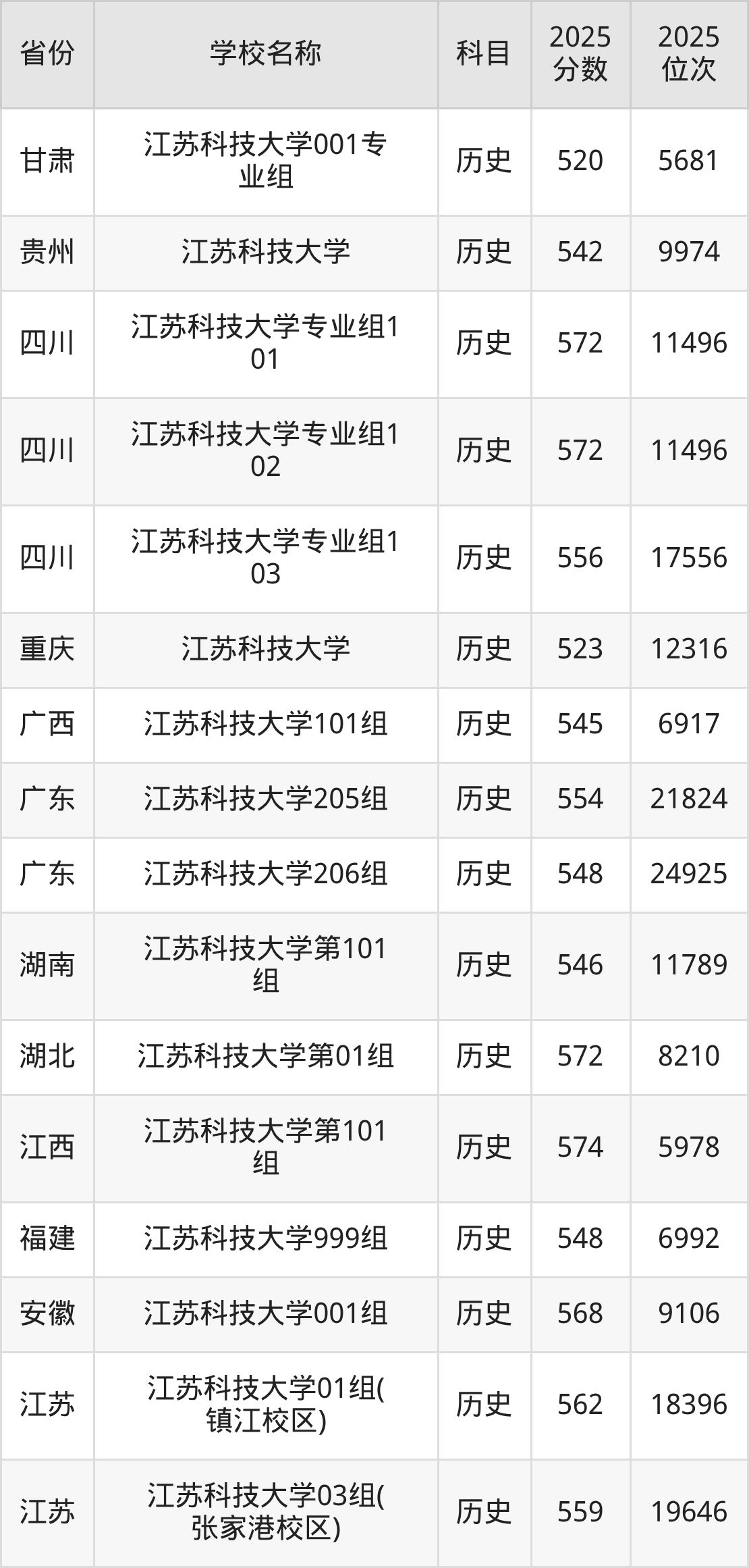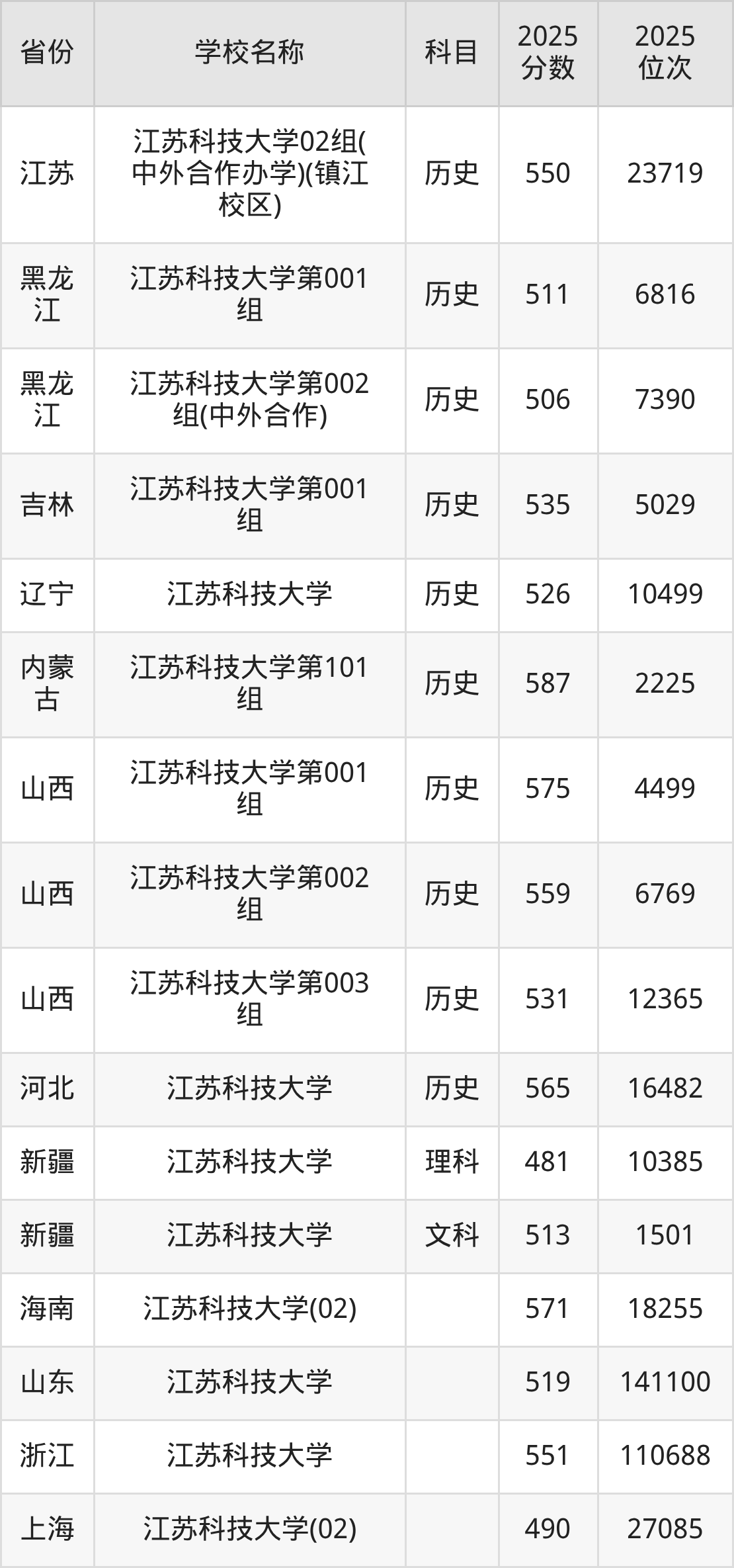 一、2025江苏科技大学录取分数线