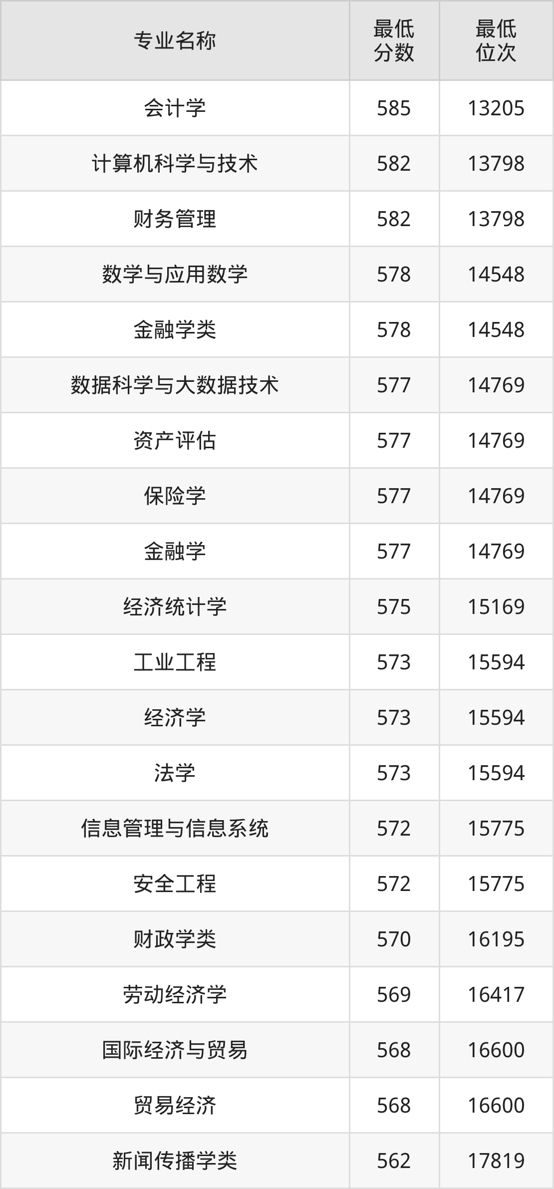 首都经济贸易大学2023年在北京各专业的录取分数线是:555分-585分。